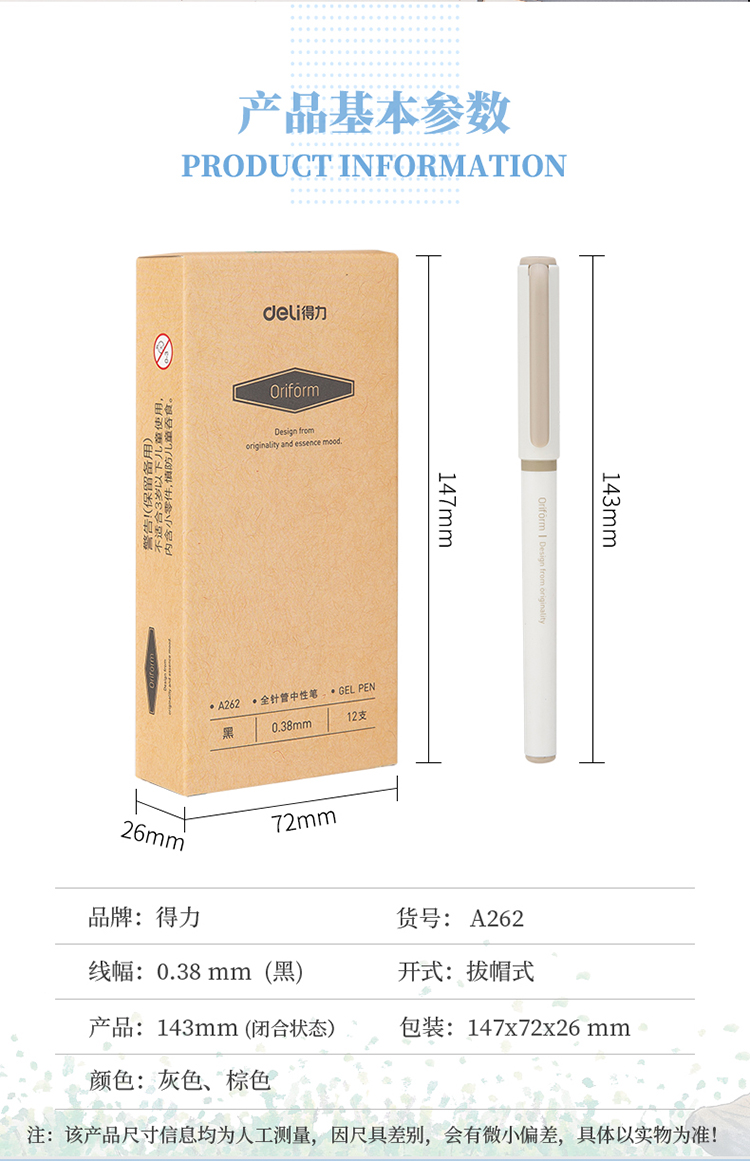得力(deli)A262 零系中性筆 黑色簽字筆 0.38mm 12支/盒