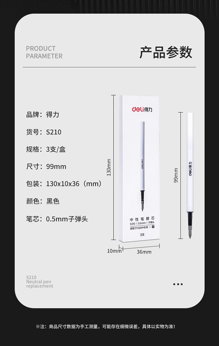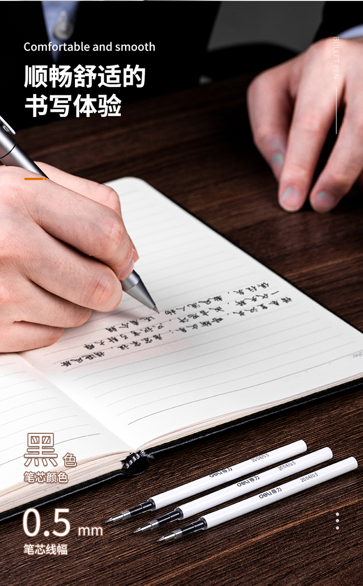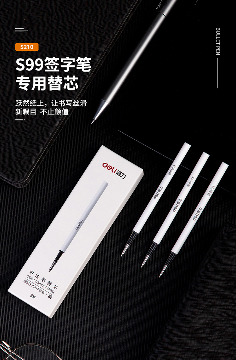 得力(deli)S210 旋轉(zhuǎn)中性筆芯 黑色簽字筆芯 3支/盒
