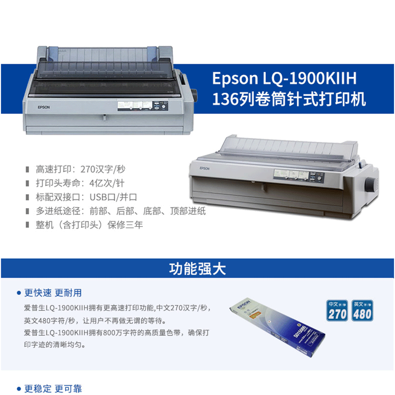 愛普生(EPSON) LQ-1900KIIH 針式打印機(136列卷筒式)