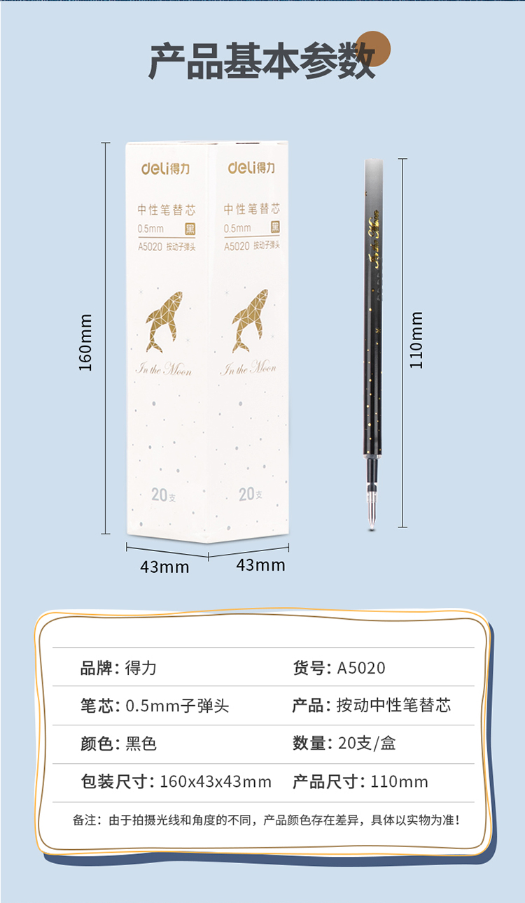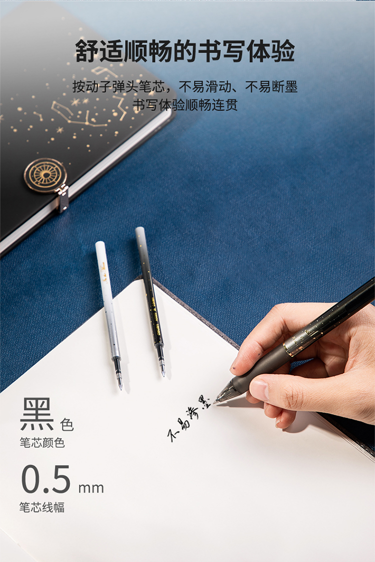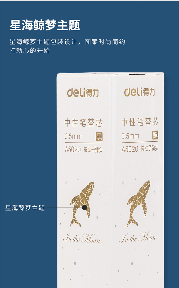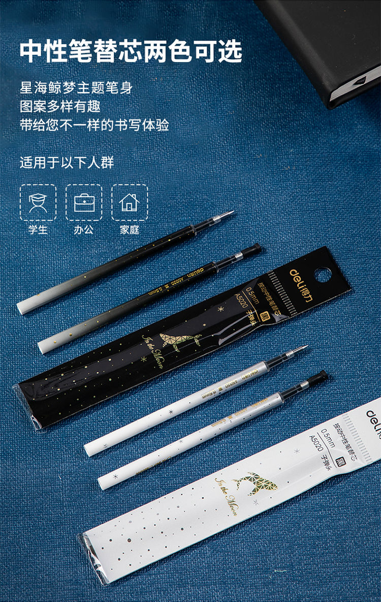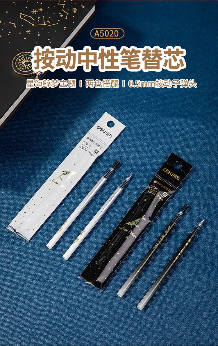 得力(deli)A5020 星海鯨夢(mèng)中性筆芯 黑色簽字筆芯 按動(dòng)筆芯0.5mm 20支/盒