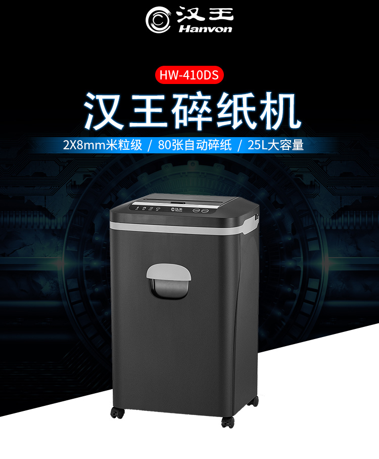 漢王(Hanvon)HW-610DS德國(guó)5級(jí)高保密碎紙機(jī) 段狀高速碎紙52L大容量辦公商用文件紙張粉碎機(jī)