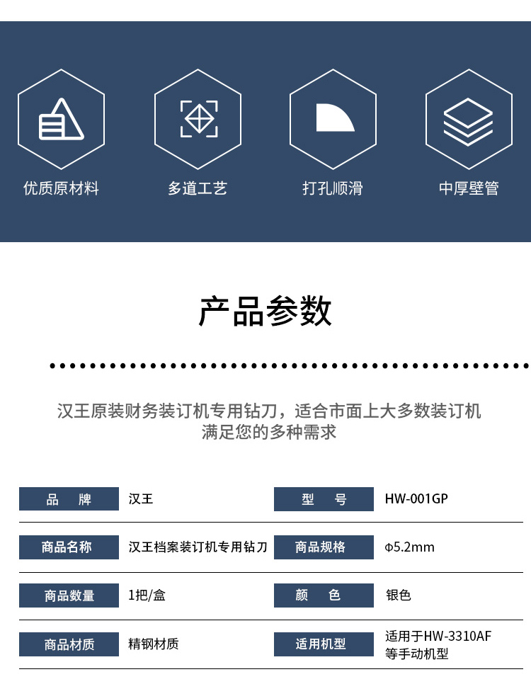 漢王(Hanvon)HW-001GP手動財務(wù)憑證裝訂機(jī)專用鉆刀打孔刀Φ5.2*40mm空心刀頭 原裝鉆刀