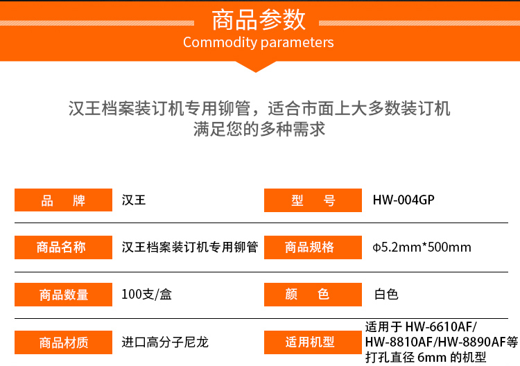 漢王(Hanvon)HW-004GP自動財務(wù)裝訂機專用透明裝訂鉚管Φ5.2*500mm 100支/盒裝熱熔管