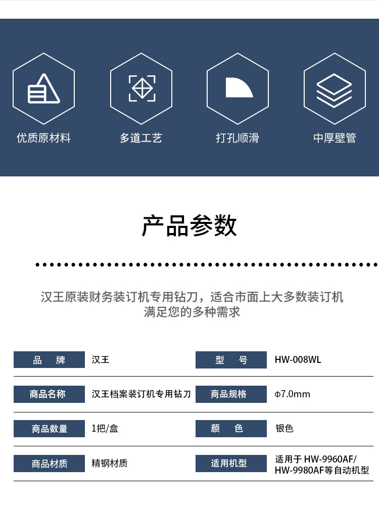 漢王(Hanvon)HW-008WL財(cái)務(wù)憑證檔案裝訂機(jī)專用空心鉆刀Φ7.0*80mm原裝真空鉆刀打孔刀頭