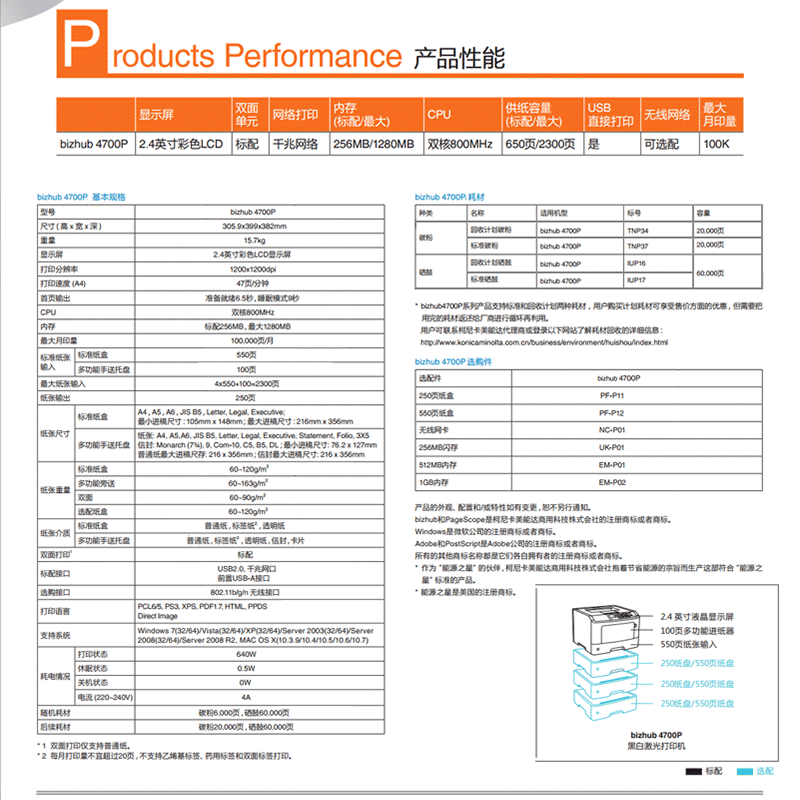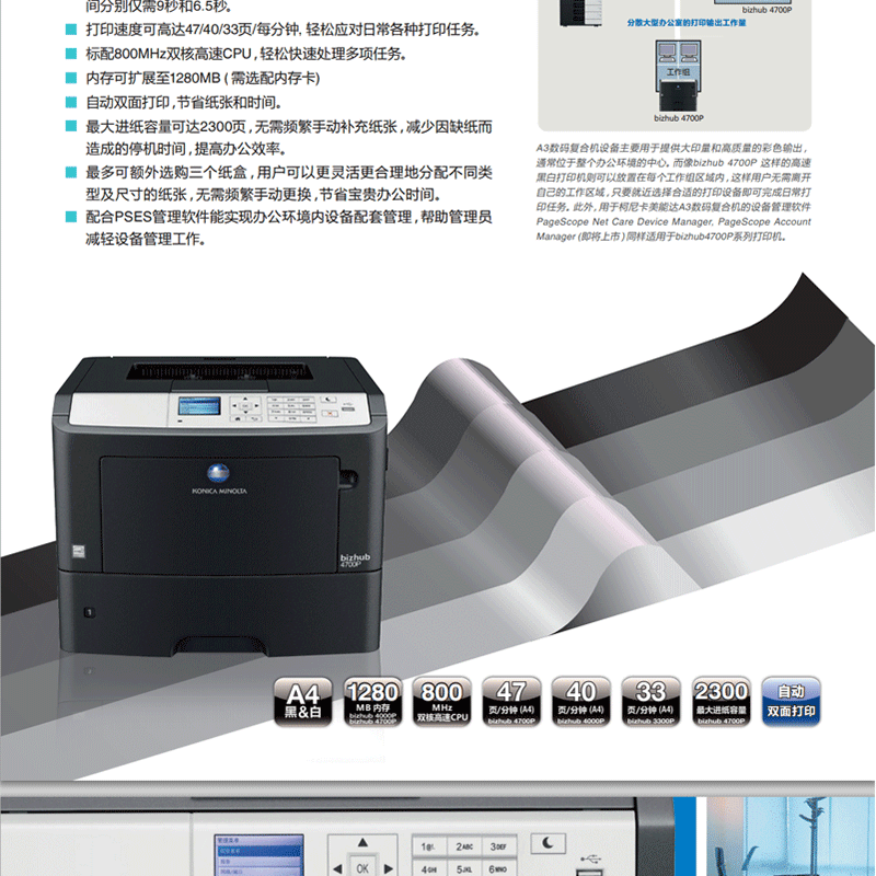 柯尼卡美能達(KONICA MINOLTA) bizhub4700P 黑白高速激光打印機