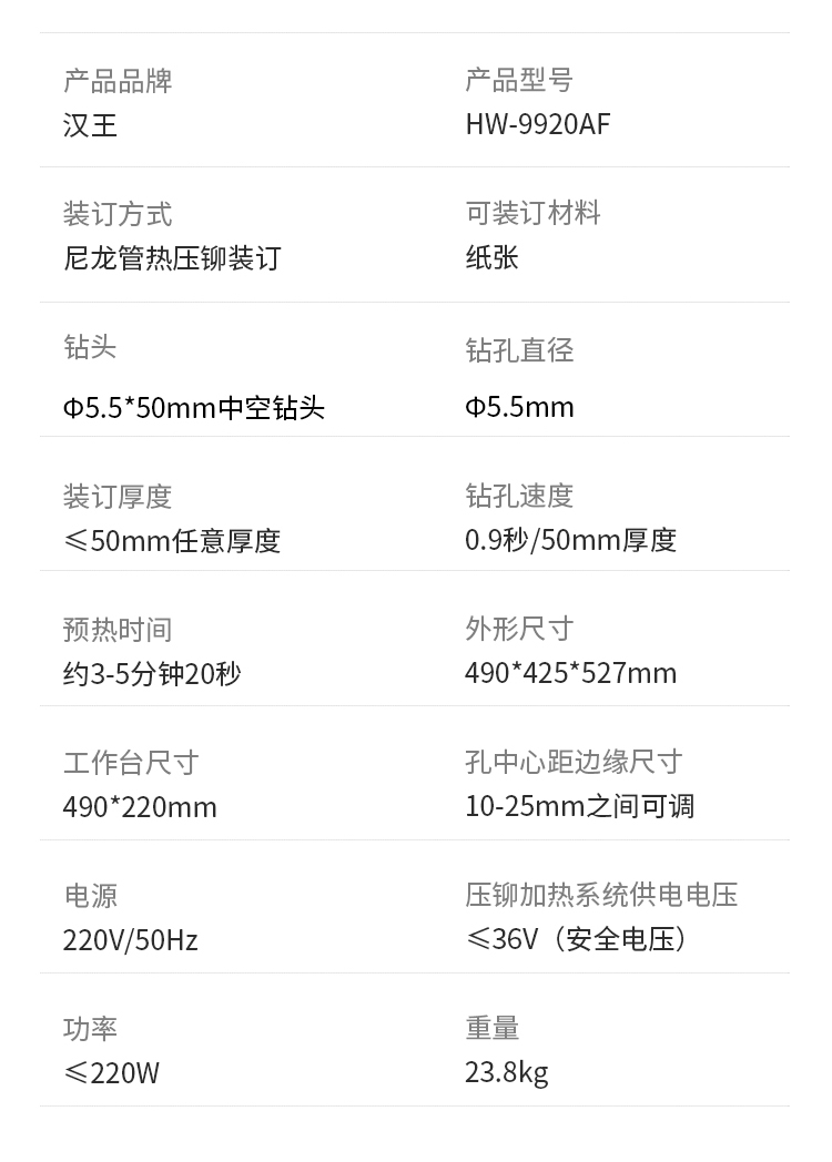 漢王(Hanvon)HW-9920AF自動(dòng)財(cái)務(wù)憑證檔案裝訂機(jī)熱熔鉚管標(biāo)書文案卷宗電動(dòng)檔案文件打孔機(jī)