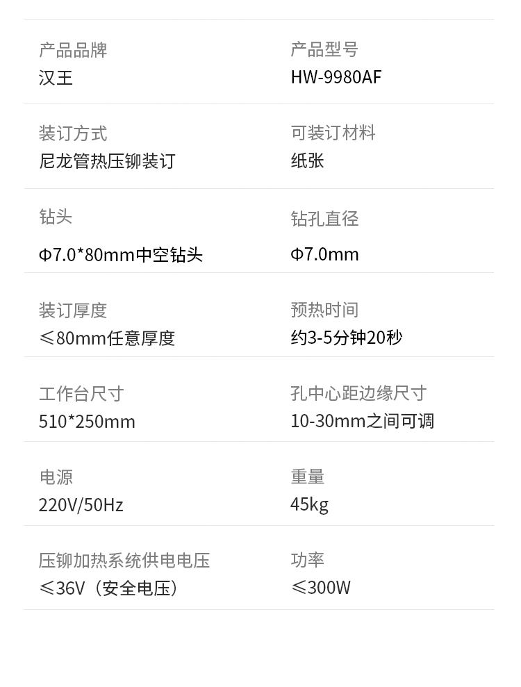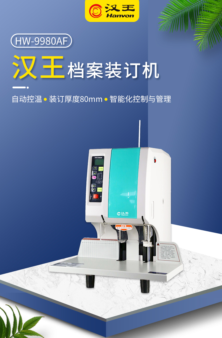 漢王(Hanvon)HW-9980AF自動財務(wù)憑證檔案裝訂機 智能高效自動溫控快速靜音電動檔案打孔機