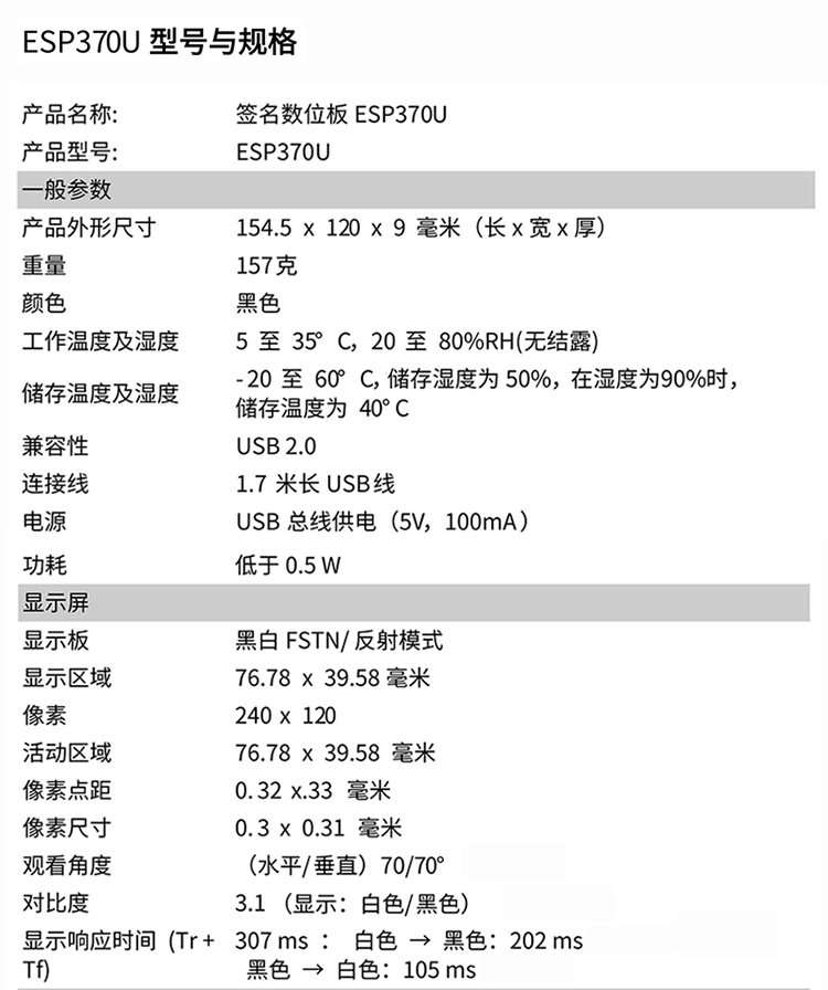 漢王(Hanvon)ESP370U 3.7英寸電子簽批屏手寫簽批板 行業(yè)簽名屏原筆跡保存 簽名數(shù)位板銀行政務窗口OA辦公