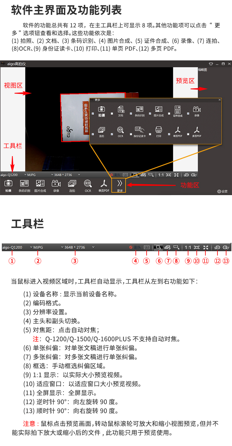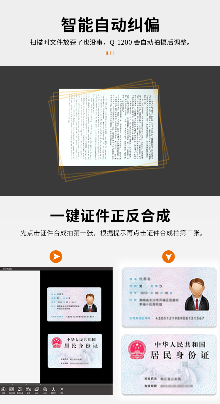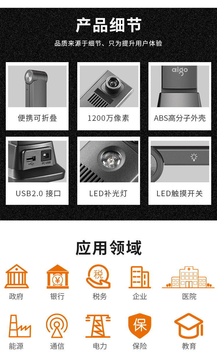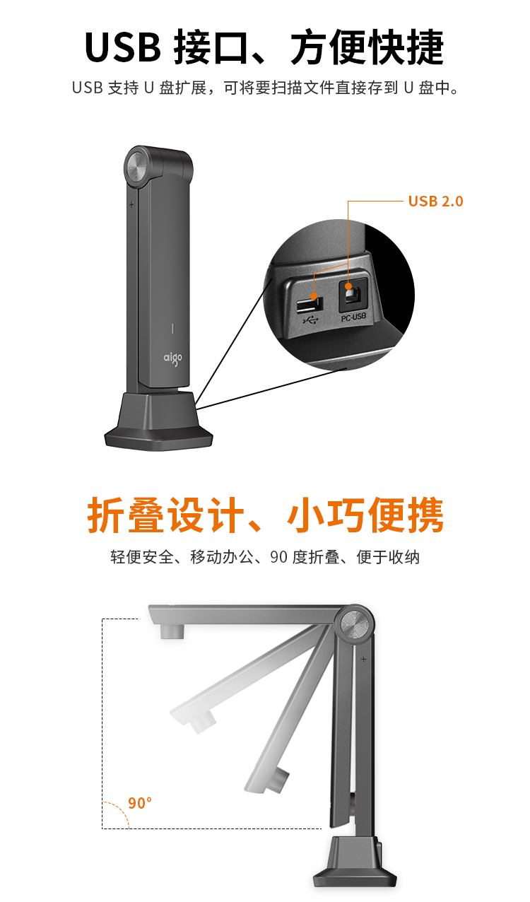 愛國者(aigo)Q-1200高拍儀掃描儀高速掃描文檔試卷資料檔案速拍儀1200萬高清像素單攝像A4幅面可折疊送軟底
