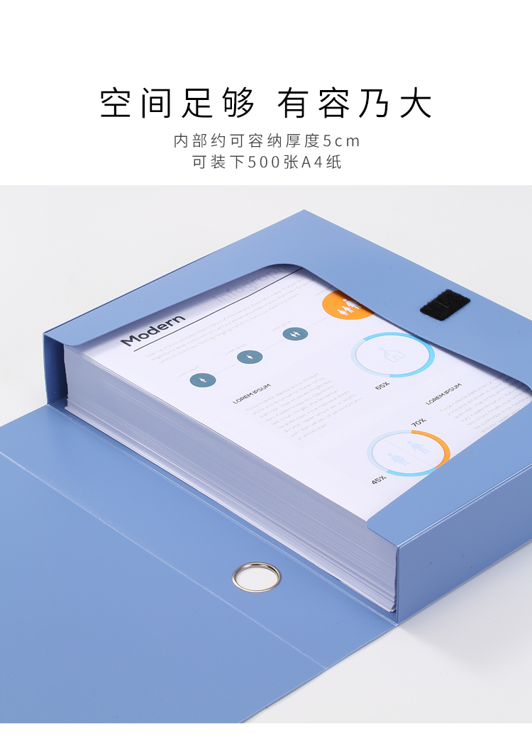齊心(Comix) 75mm加厚檔案盒/A4文件盒/鯤鵬系列粘扣塑料資料盒 辦公用品 灰藍(lán)A1259