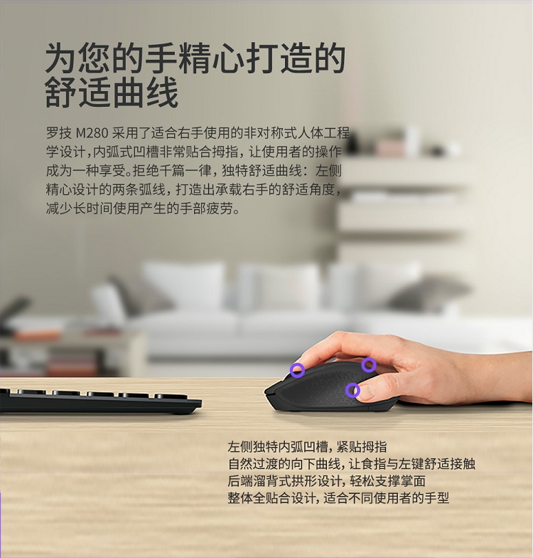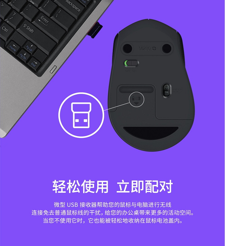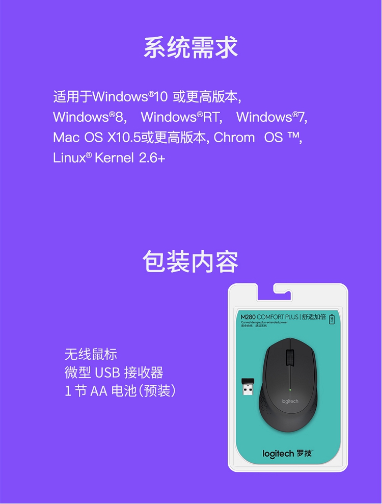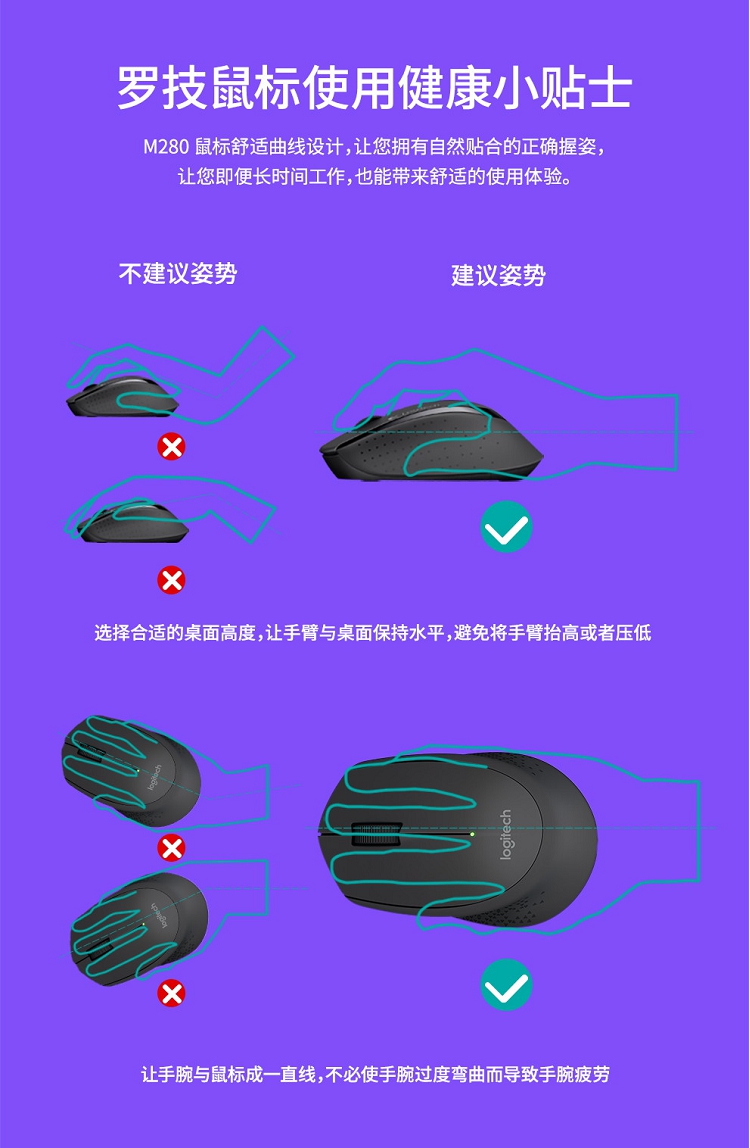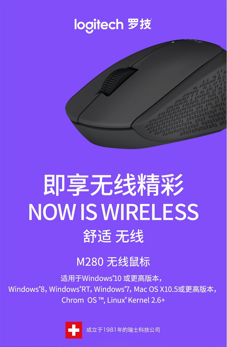 羅技(Logitech) M280無線鼠標光電筆記本電腦商務辦公家用鼠標 M280黑色
