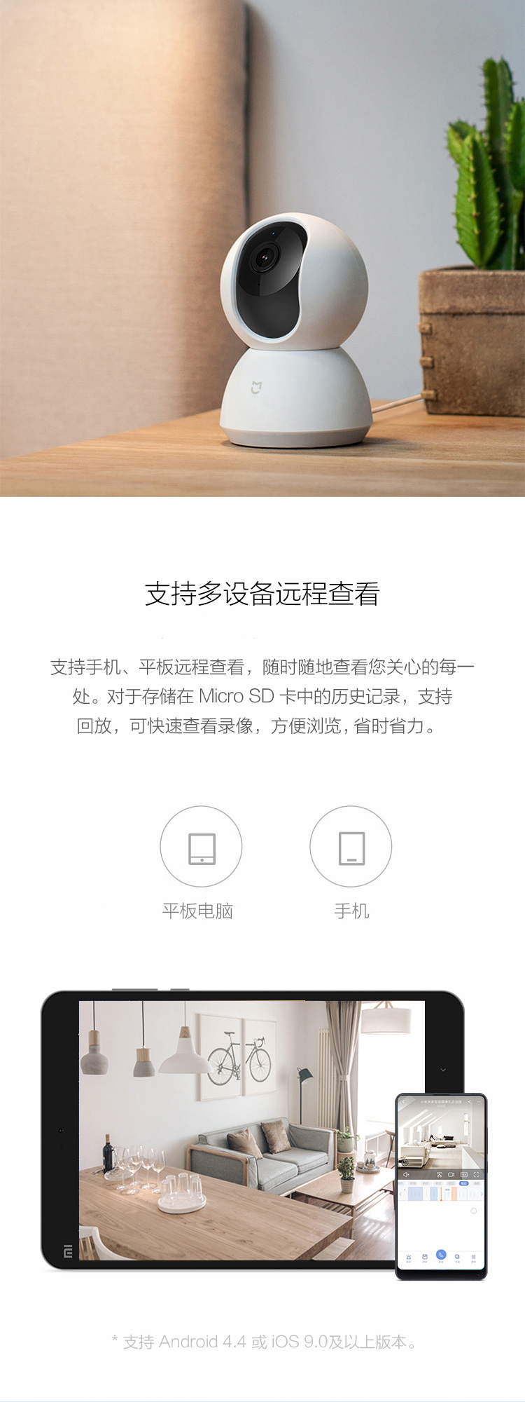 小米(MI)米家智能攝像頭云臺版1080P監(jiān)控高清360度紅外夜視增強移動監(jiān)測攝像機 云臺版1080P + 64G高速卡