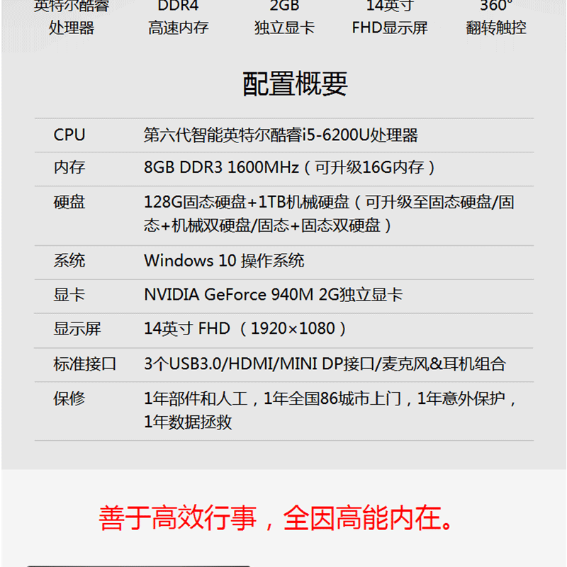 i5-6200U 8G內(nèi)存 1TB機(jī)械硬盤+128G固態(tài)混合硬盤 14英寸FHD高清顯示屏 ?