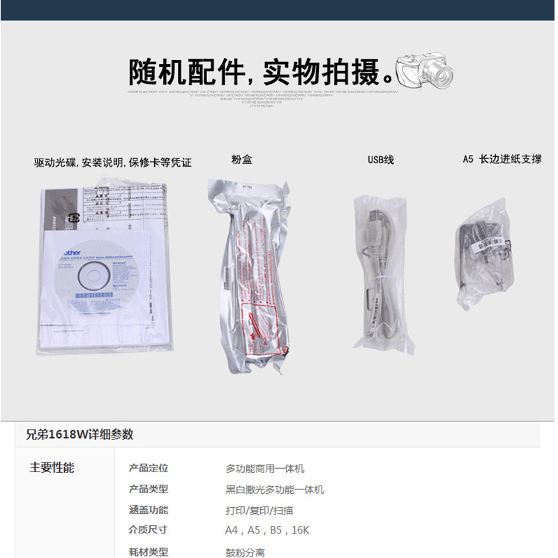 兄弟(brother) DCP1618W 黑白激光多功能一體機(jī)(打印、復(fù)印、掃描)