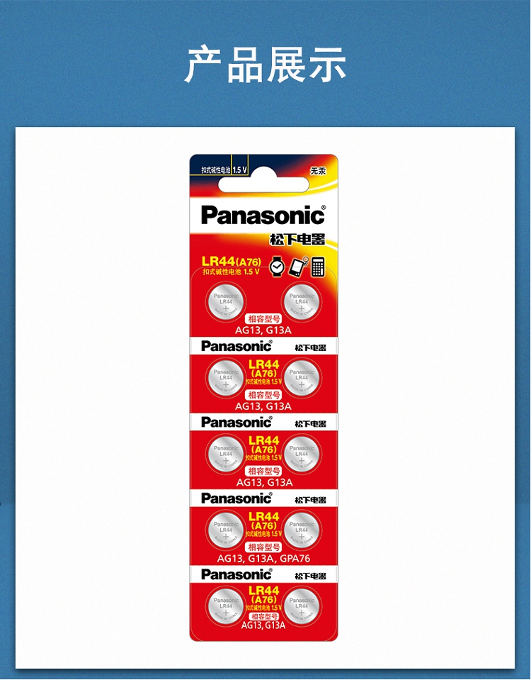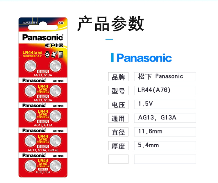 松下(Panasonic)LR44/AG13/A76/L1154 扣式堿性電池適用于溫度計發(fā)聲書計算器紅外筆玩具等小電器 10粒裝