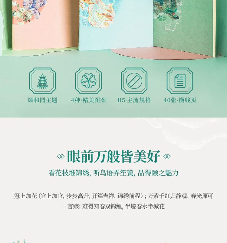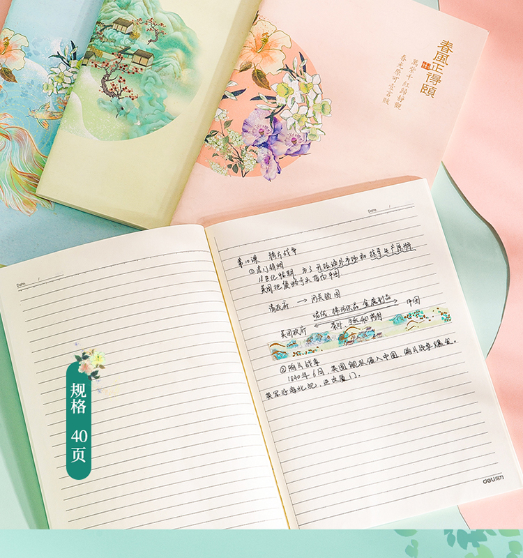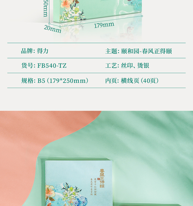 得力(deli) 頤和園聯(lián)名 春風正得頤系列4本B5/40張軟抄本套裝 FB540-TZ