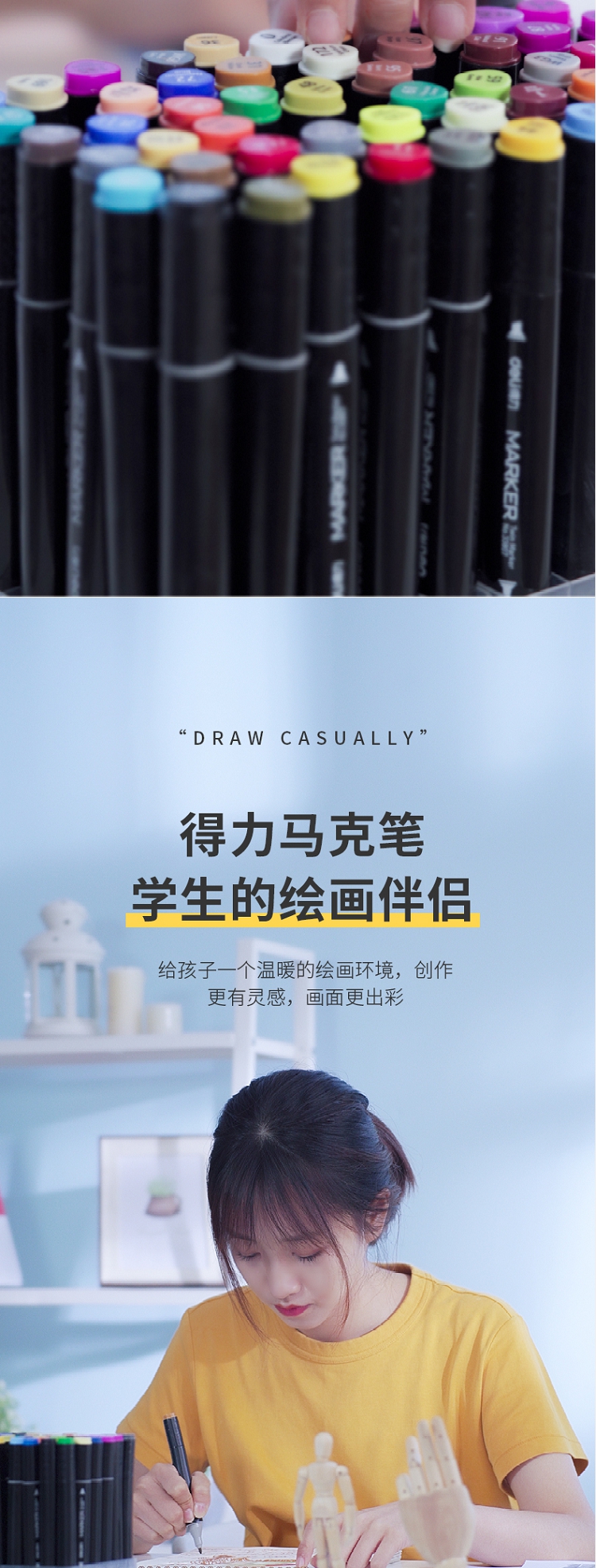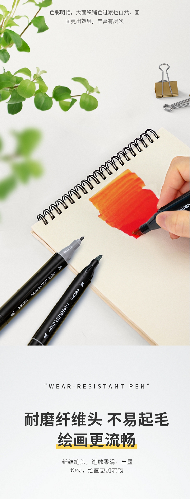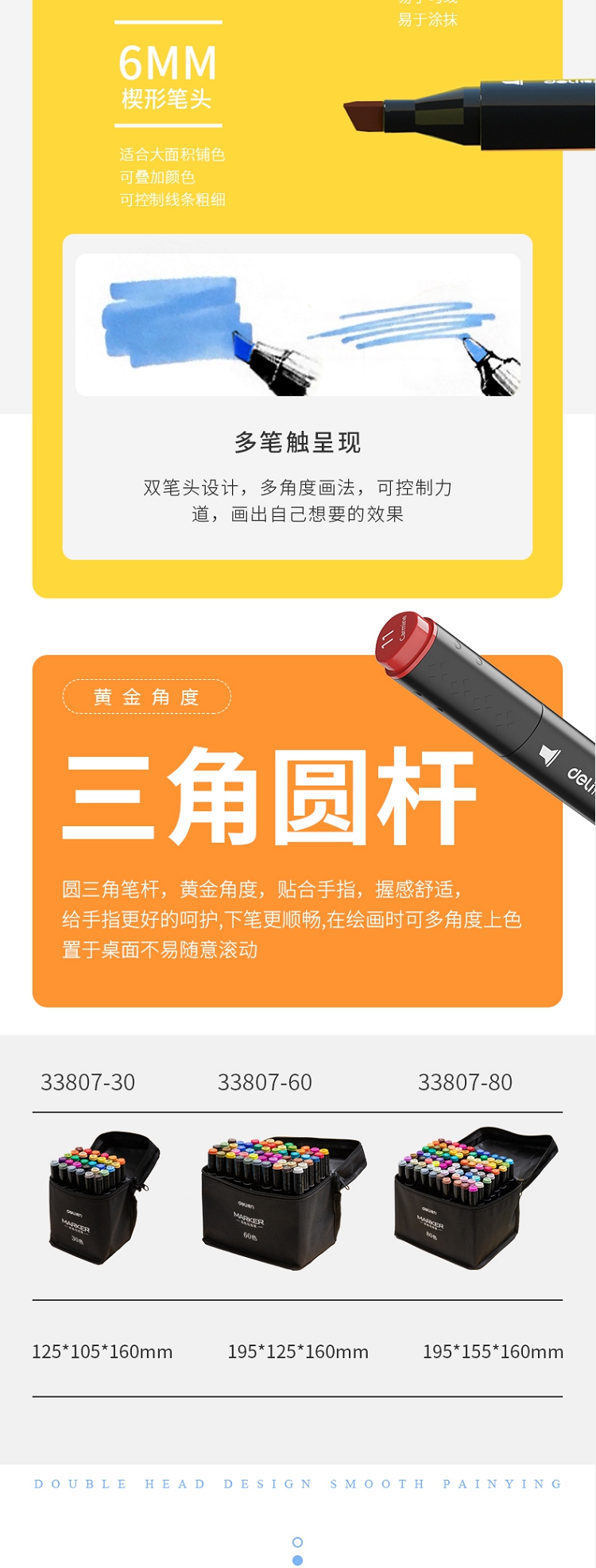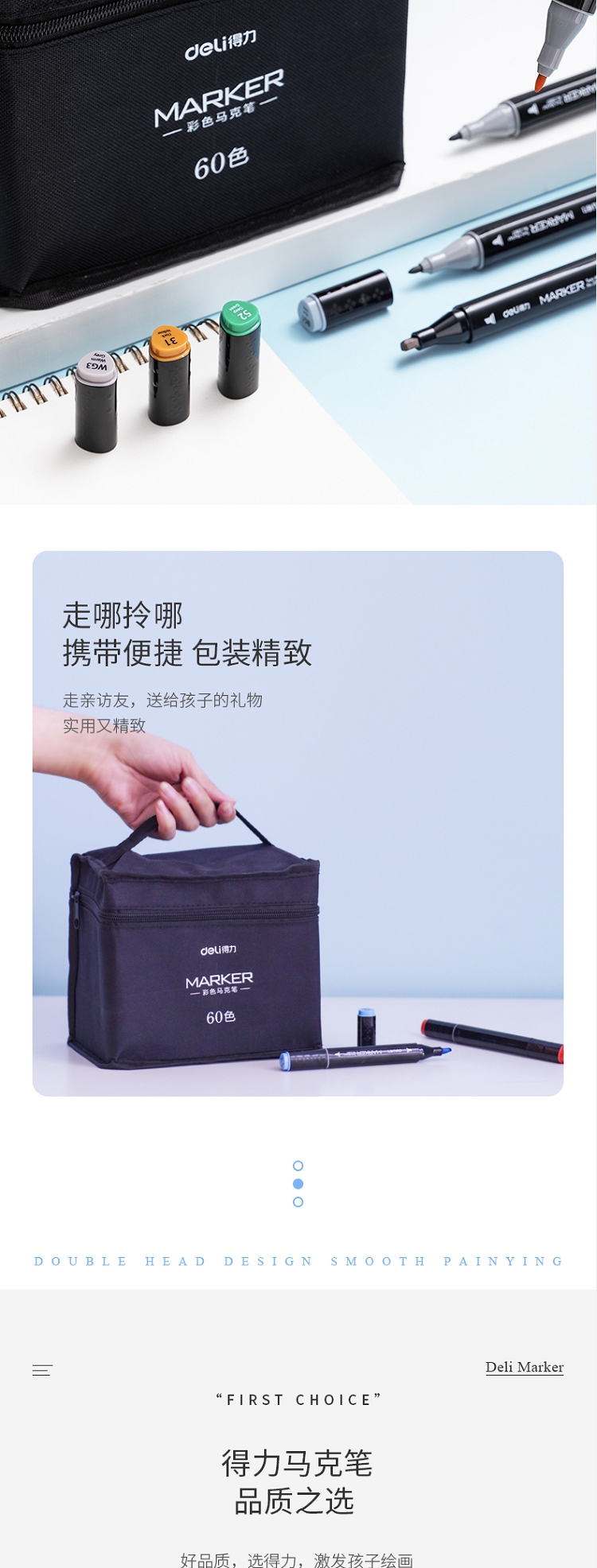 得力(deli) 學(xué)生馬克筆套裝 雙頭速干 鋼琴黑桿 60色 33807-60