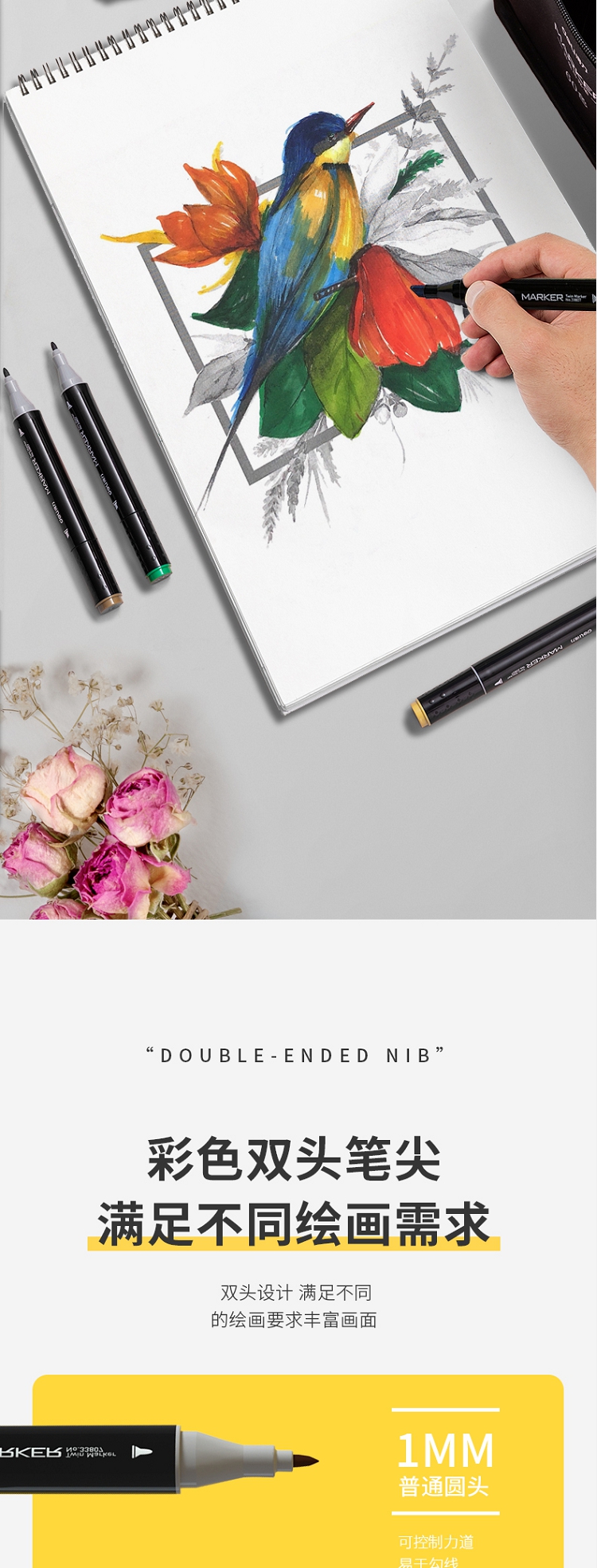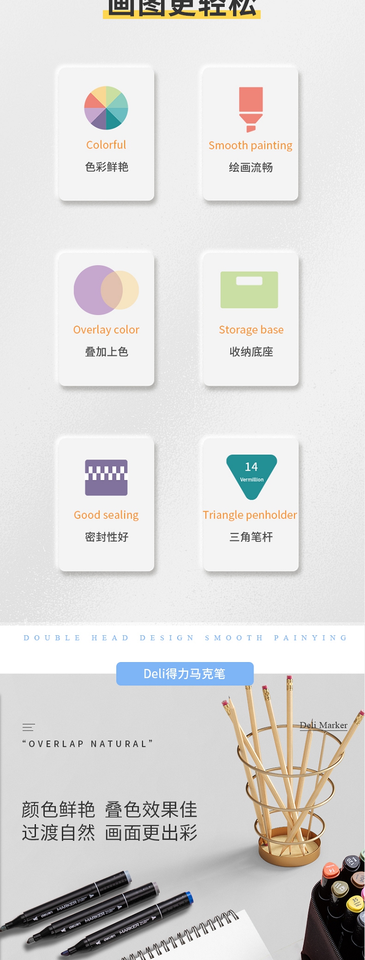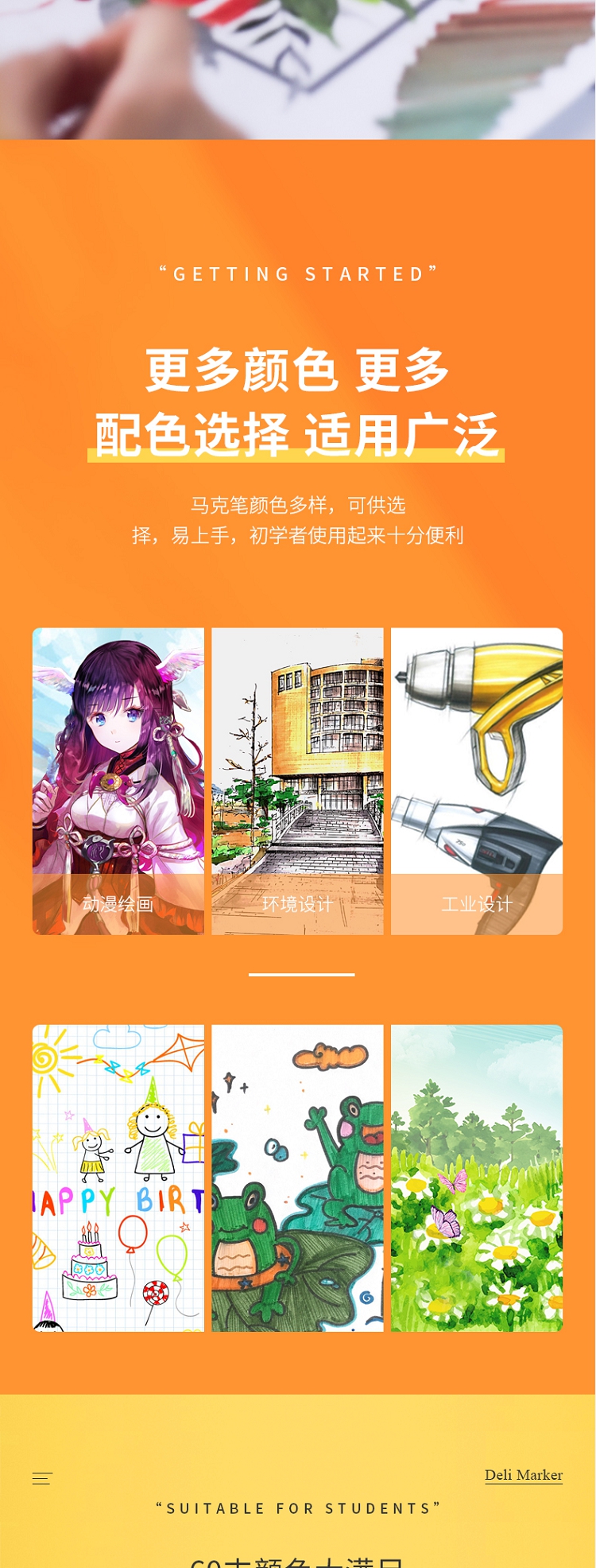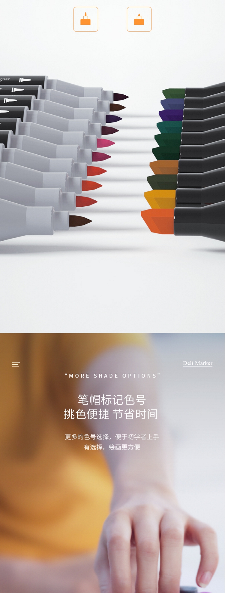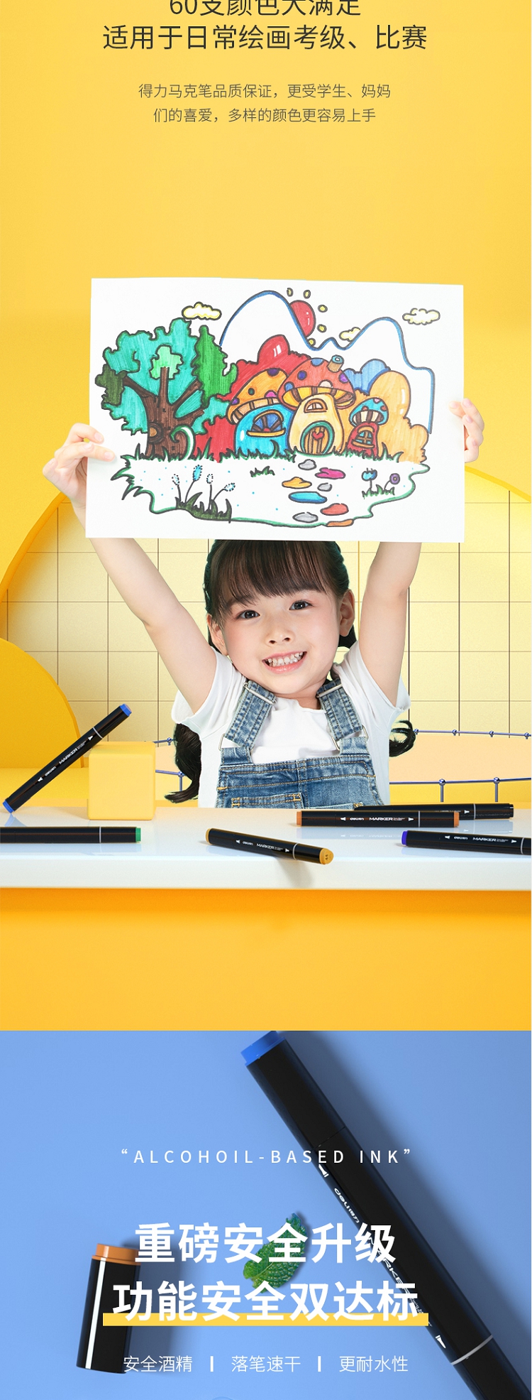 得力(deli) 學(xué)生馬克筆套裝 雙頭速干 鋼琴黑桿 60色 33807-60