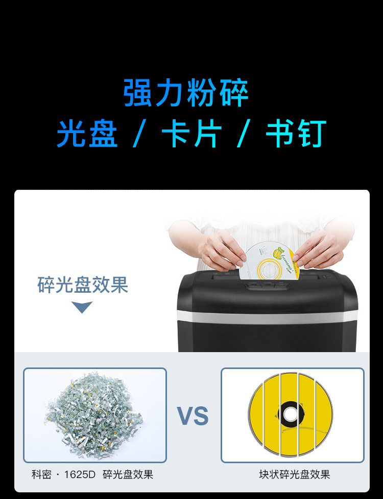 科密(comet)4級保密辦公商用碎紙機(單次16張 持續(xù)120分鐘 25L 可碎卡、光盤、訂書針)1625D
