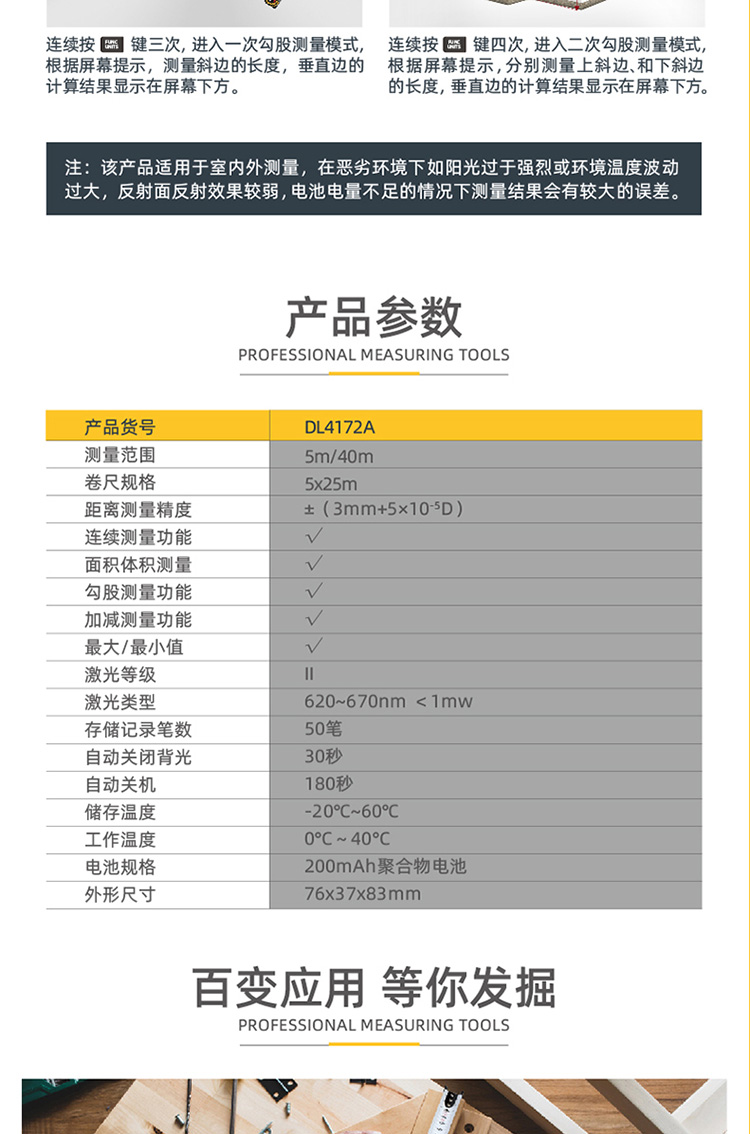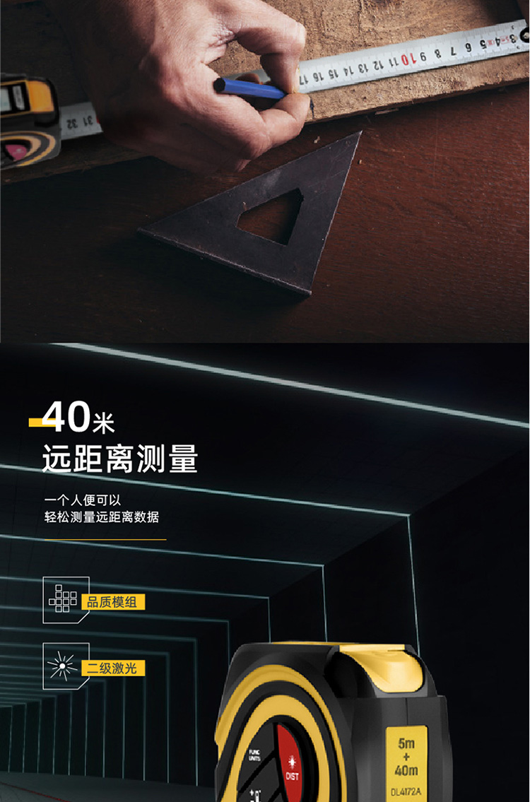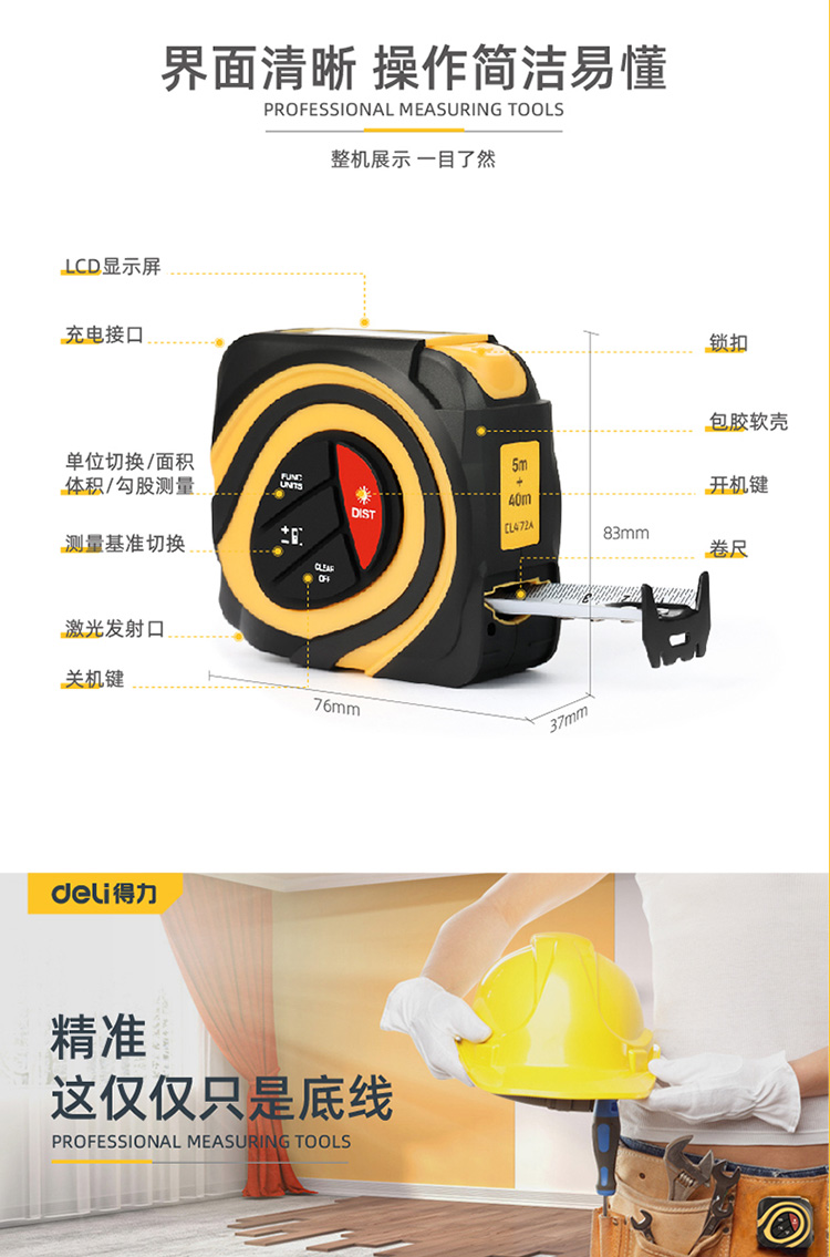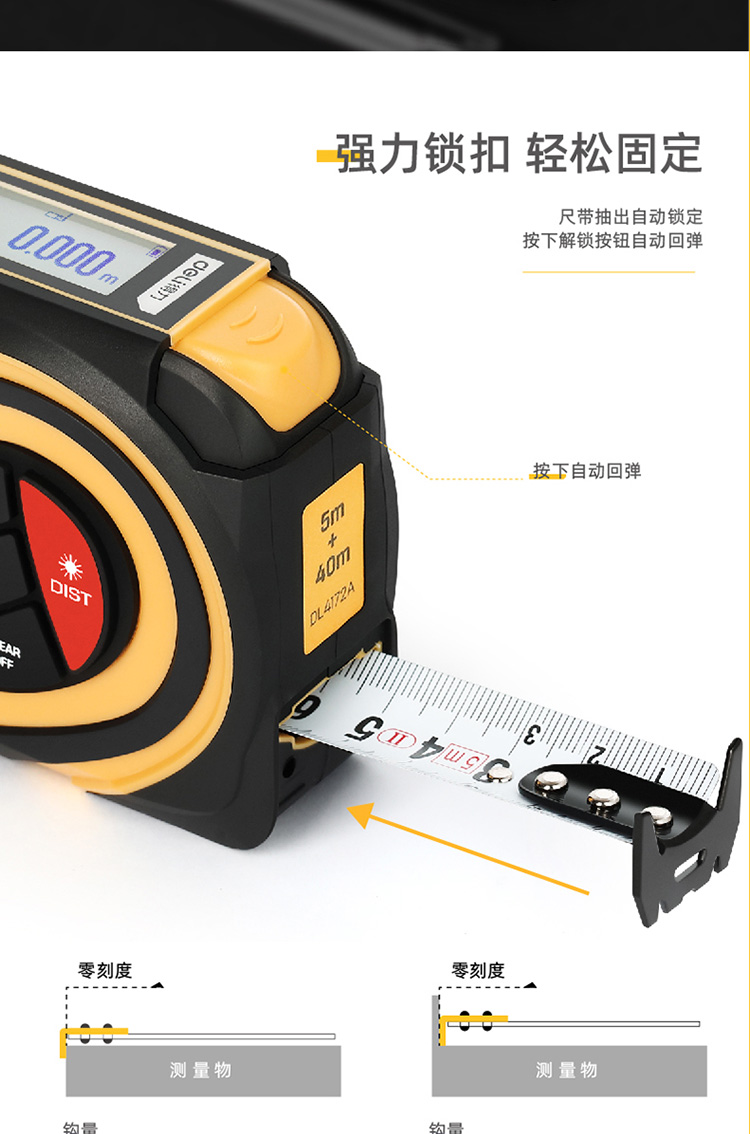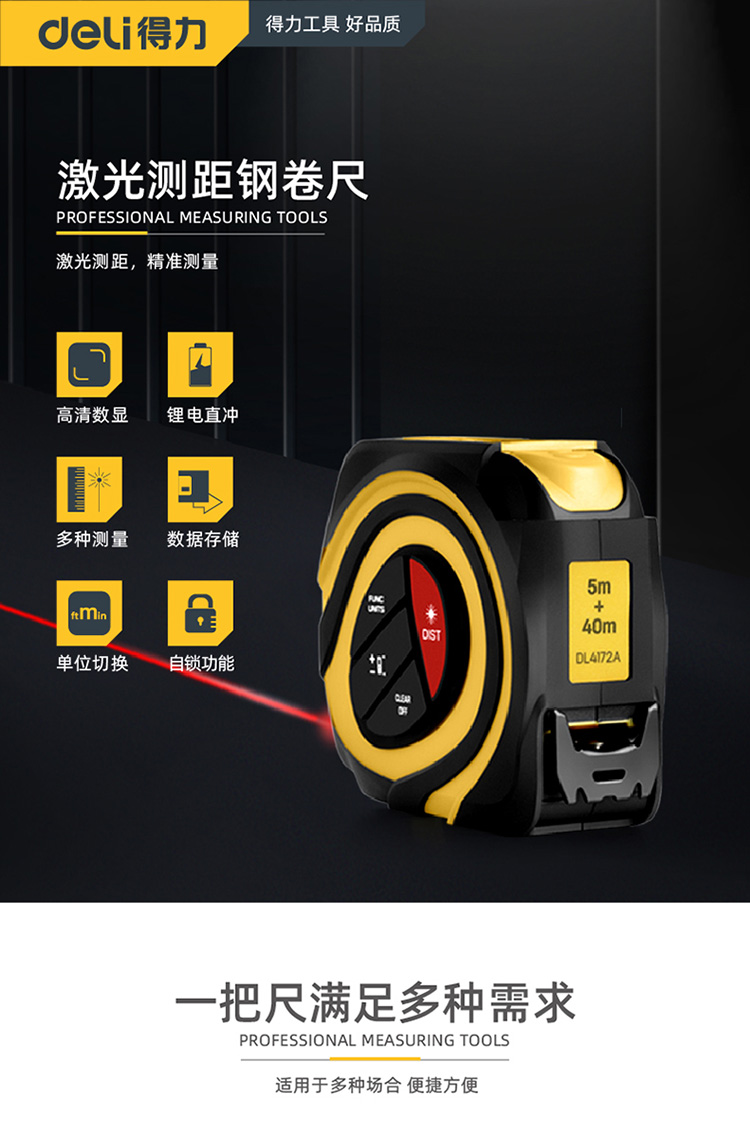 得力(deli) 40米自鎖激光測距鋼卷尺激光測距儀數(shù)顯鋼卷尺量房儀木工尺子 (40米+5米卷尺) DL4172A