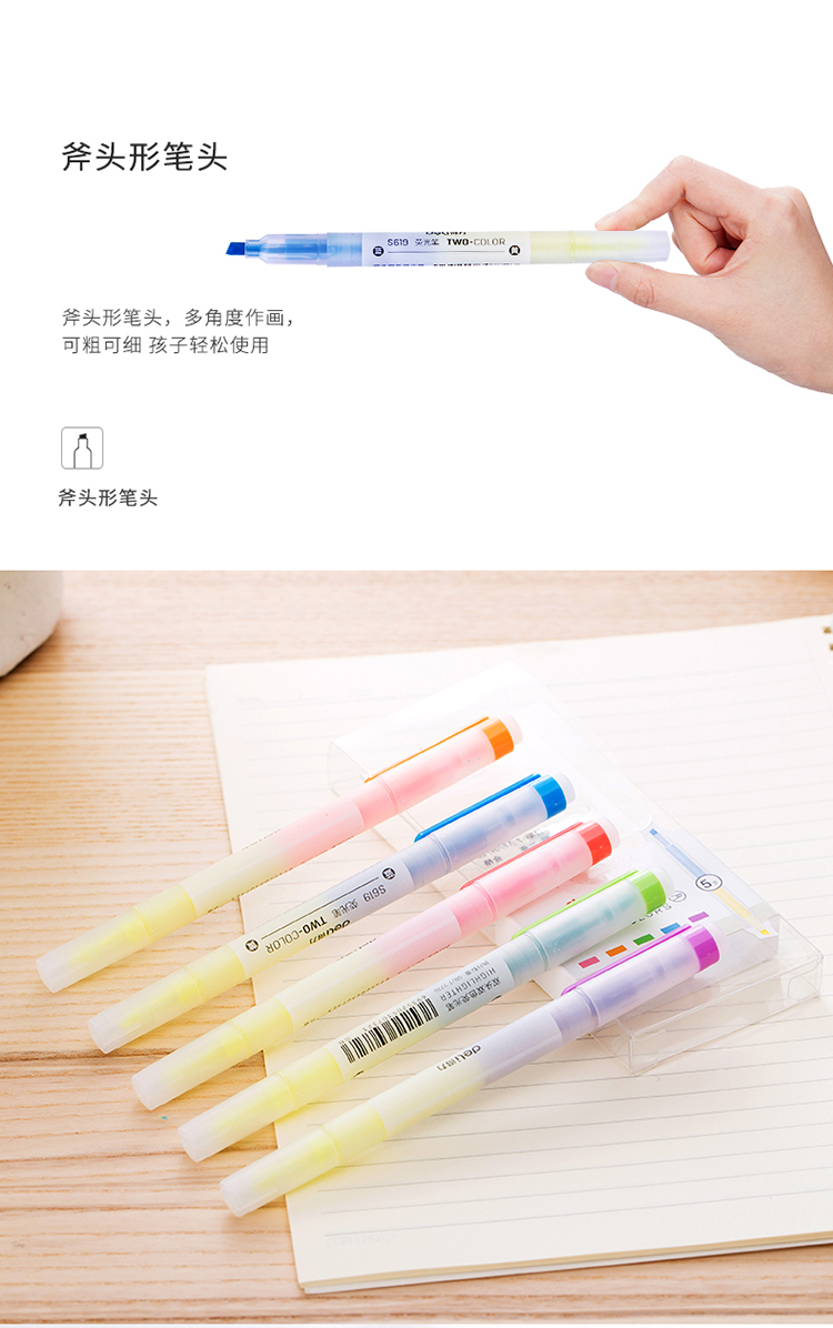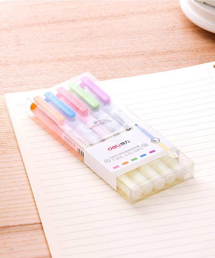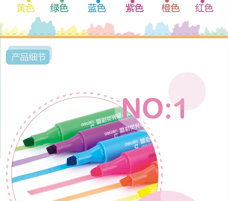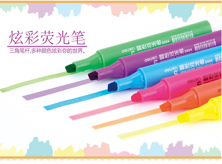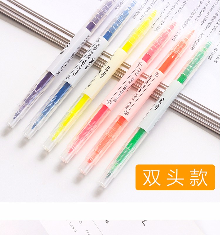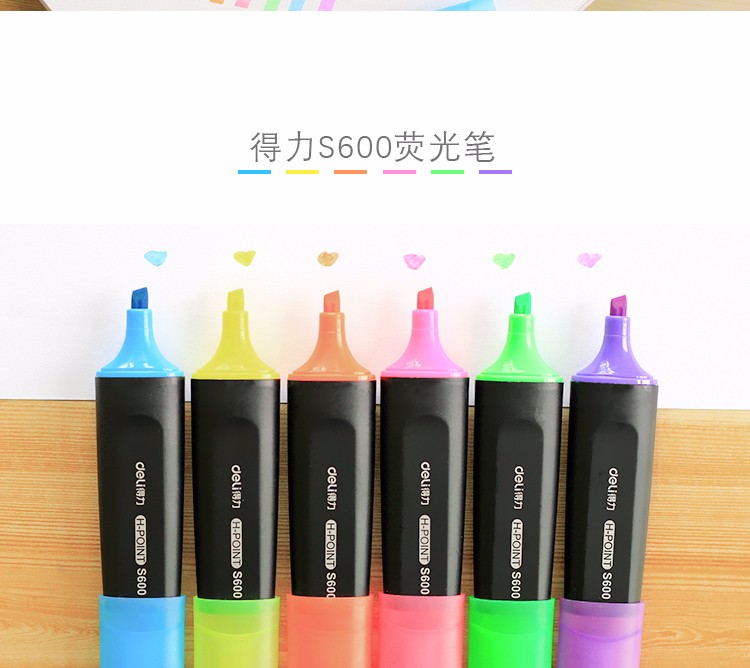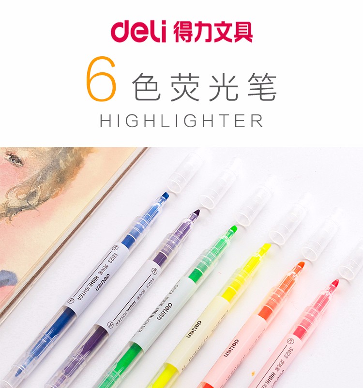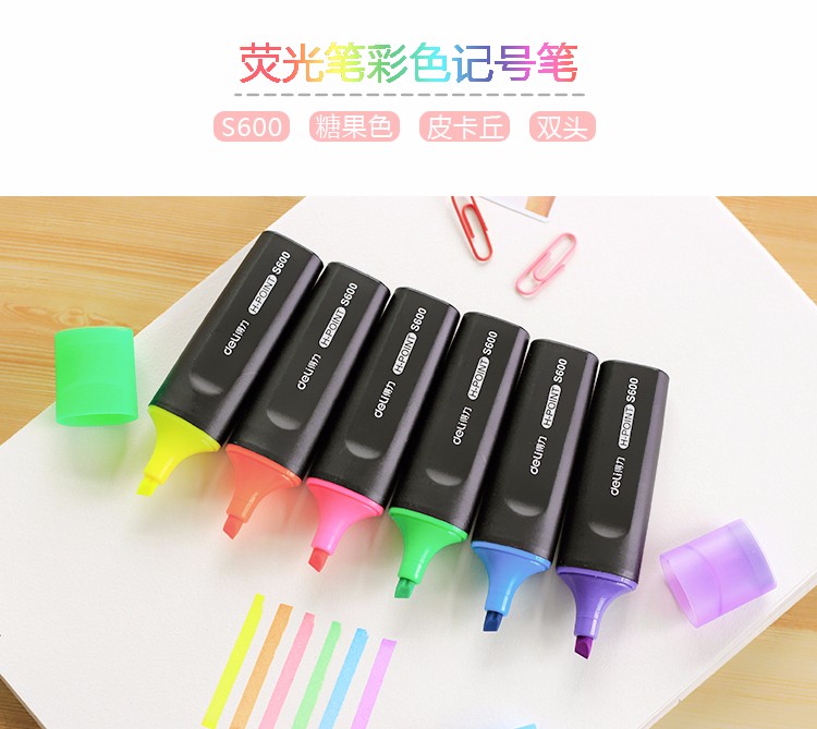 得力(deli)雙頭熒光筆重點(diǎn)醒目劃線筆標(biāo)記筆記號筆彩色筆套裝辦公學(xué)生文具 6支/盒 三角桿熒光筆S605