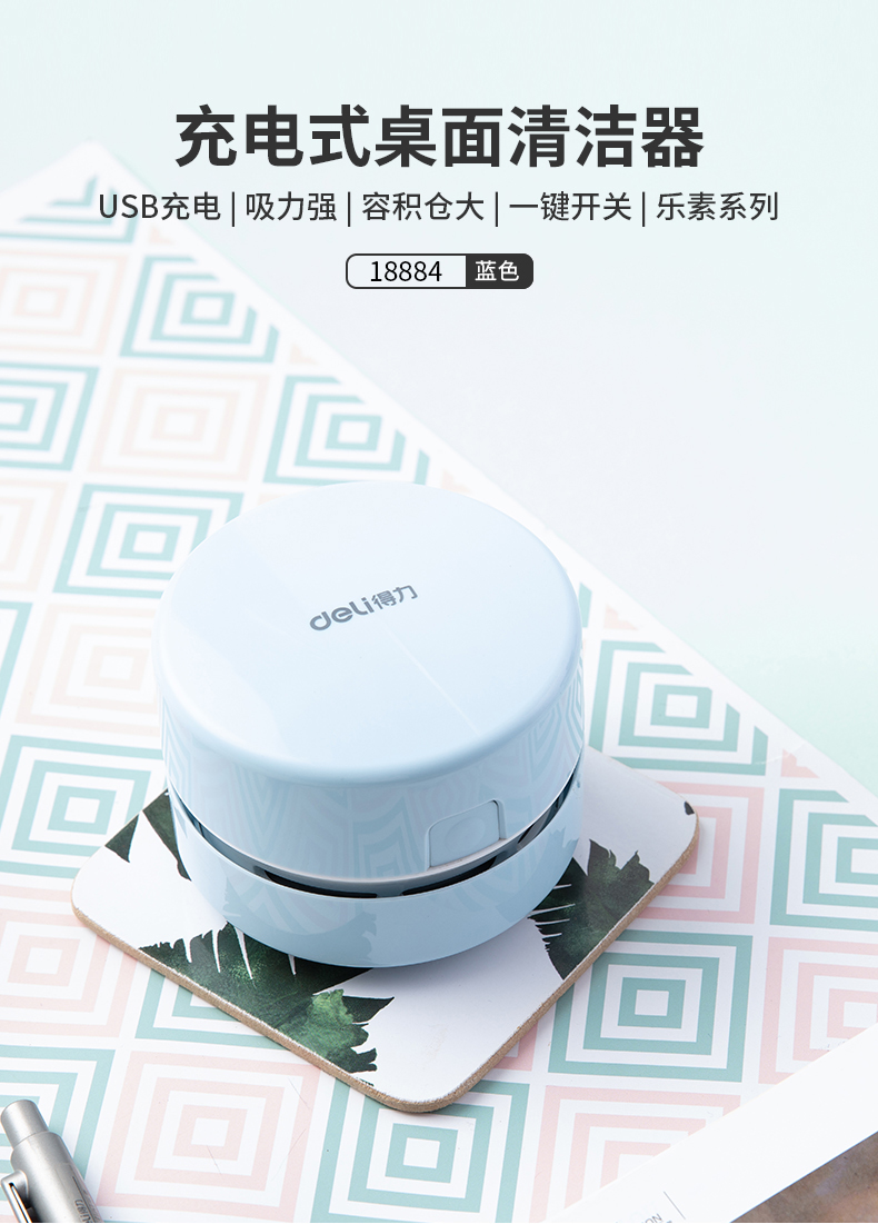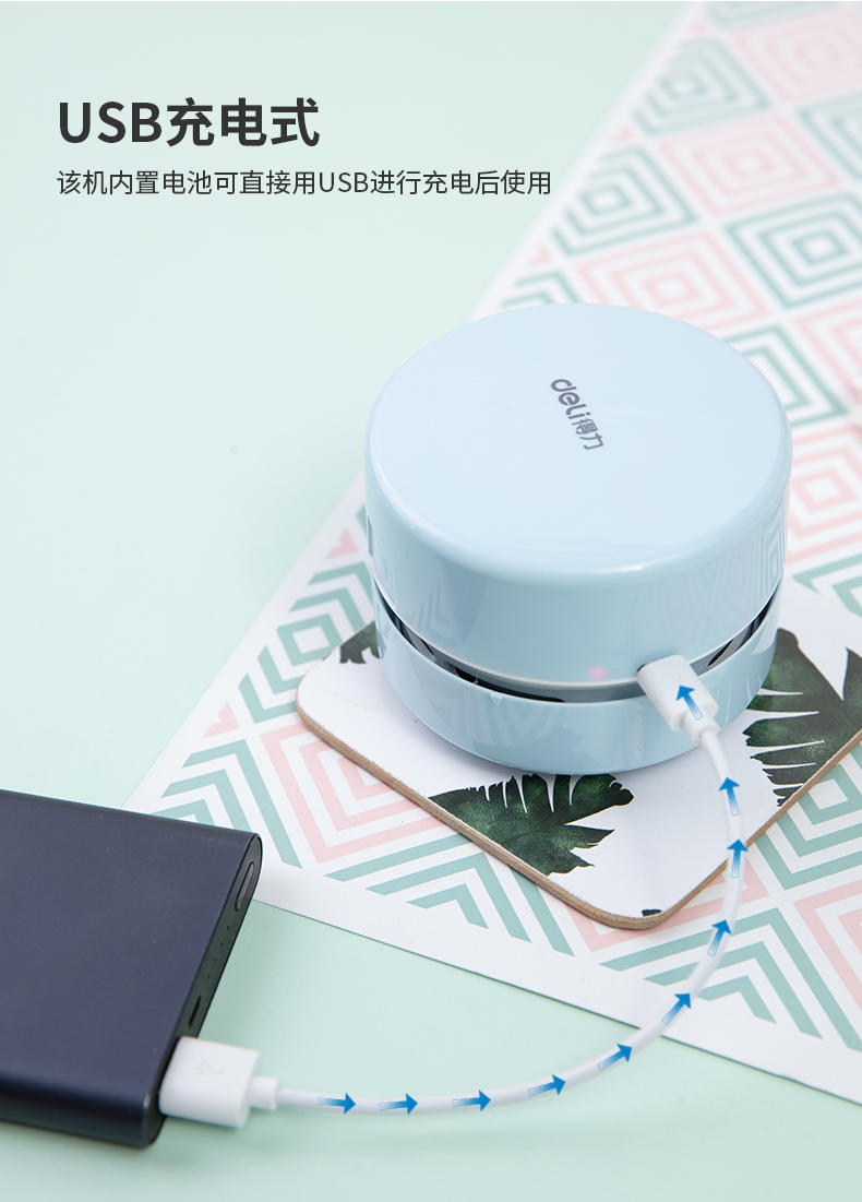 得力 桌面吸塵器電動橡皮擦屑清潔器 淺藍(lán)/手提充電款18890