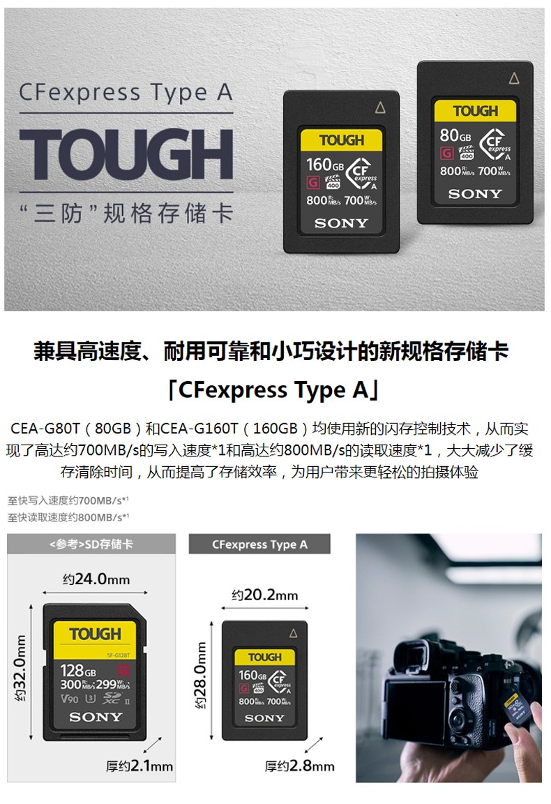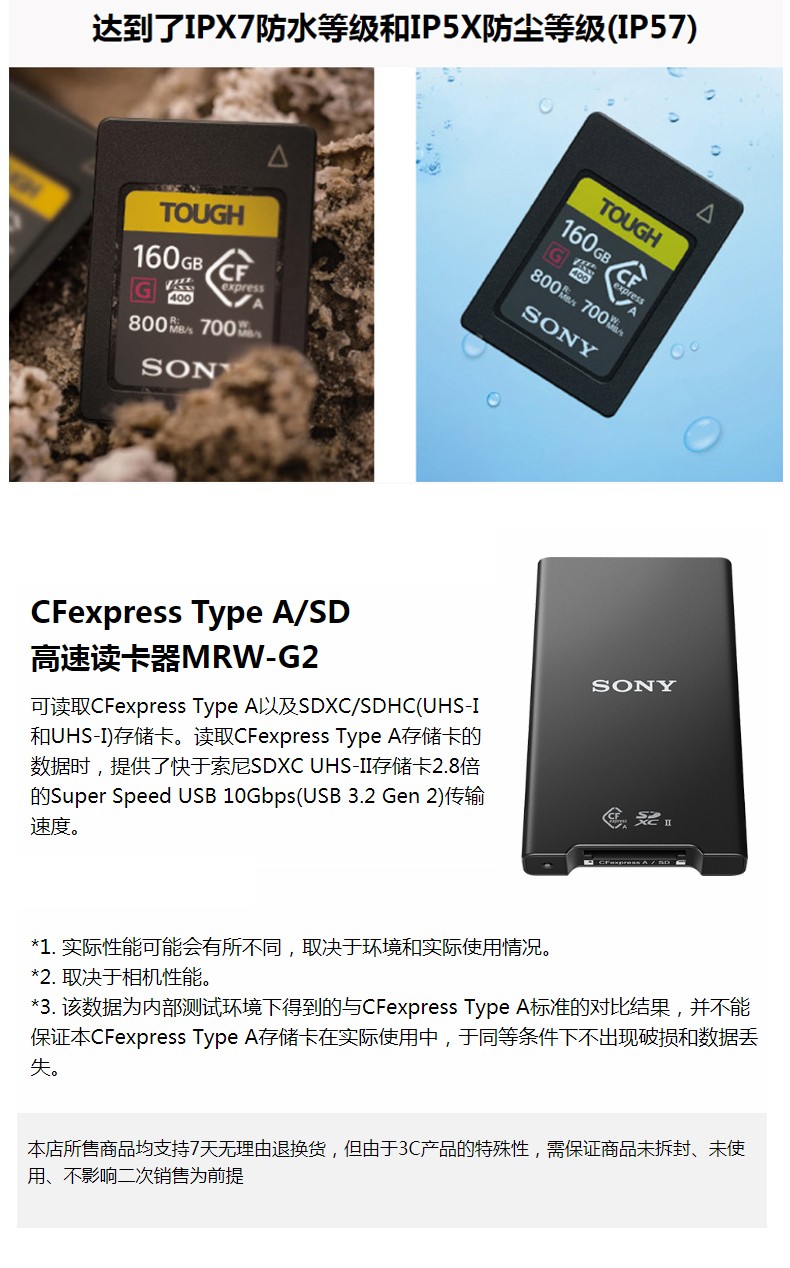 索尼(SONY)A7SM3存儲卡 微單相機 CFexpress Type A 專用內(nèi)存卡 專用讀卡器MRW-G2