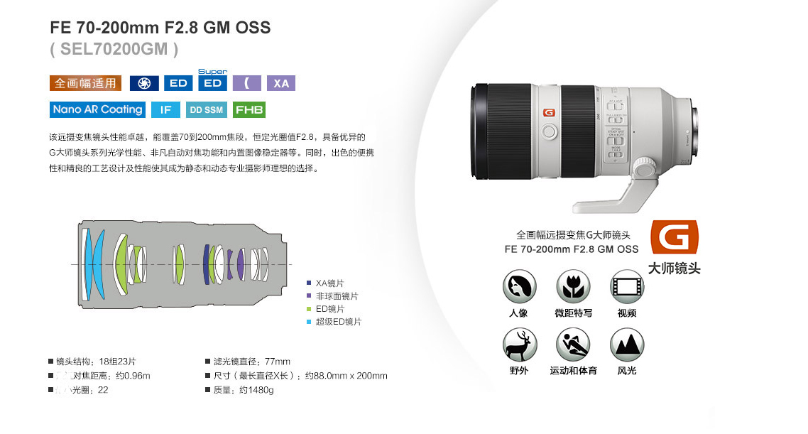 索尼(SONY)微單相機(jī) 全畫(huà)幅變焦鏡頭 索尼24-70mm F2.8 GM標(biāo)準(zhǔn)鏡頭