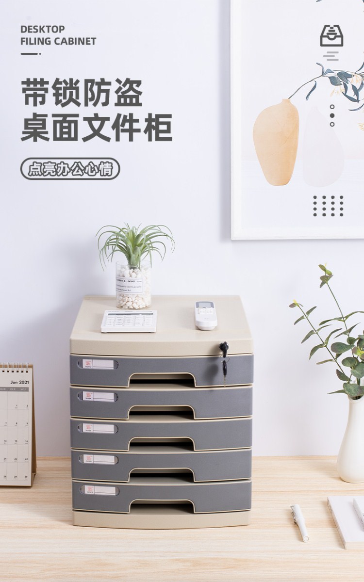 釗盛 ZS-P2905 塑料5層帶鎖文件柜/灰色