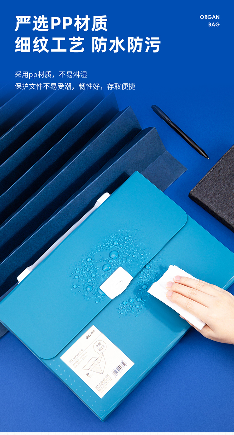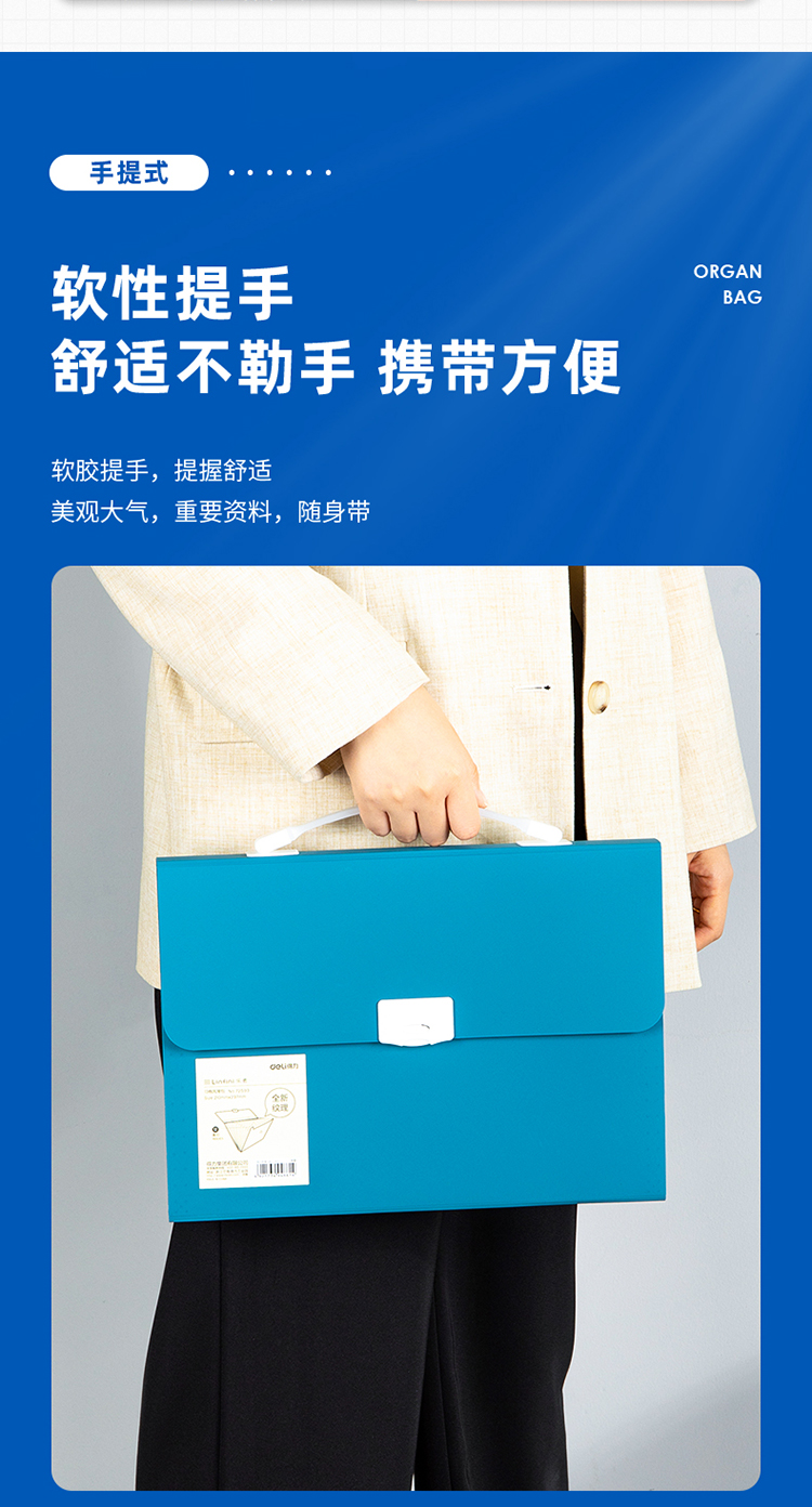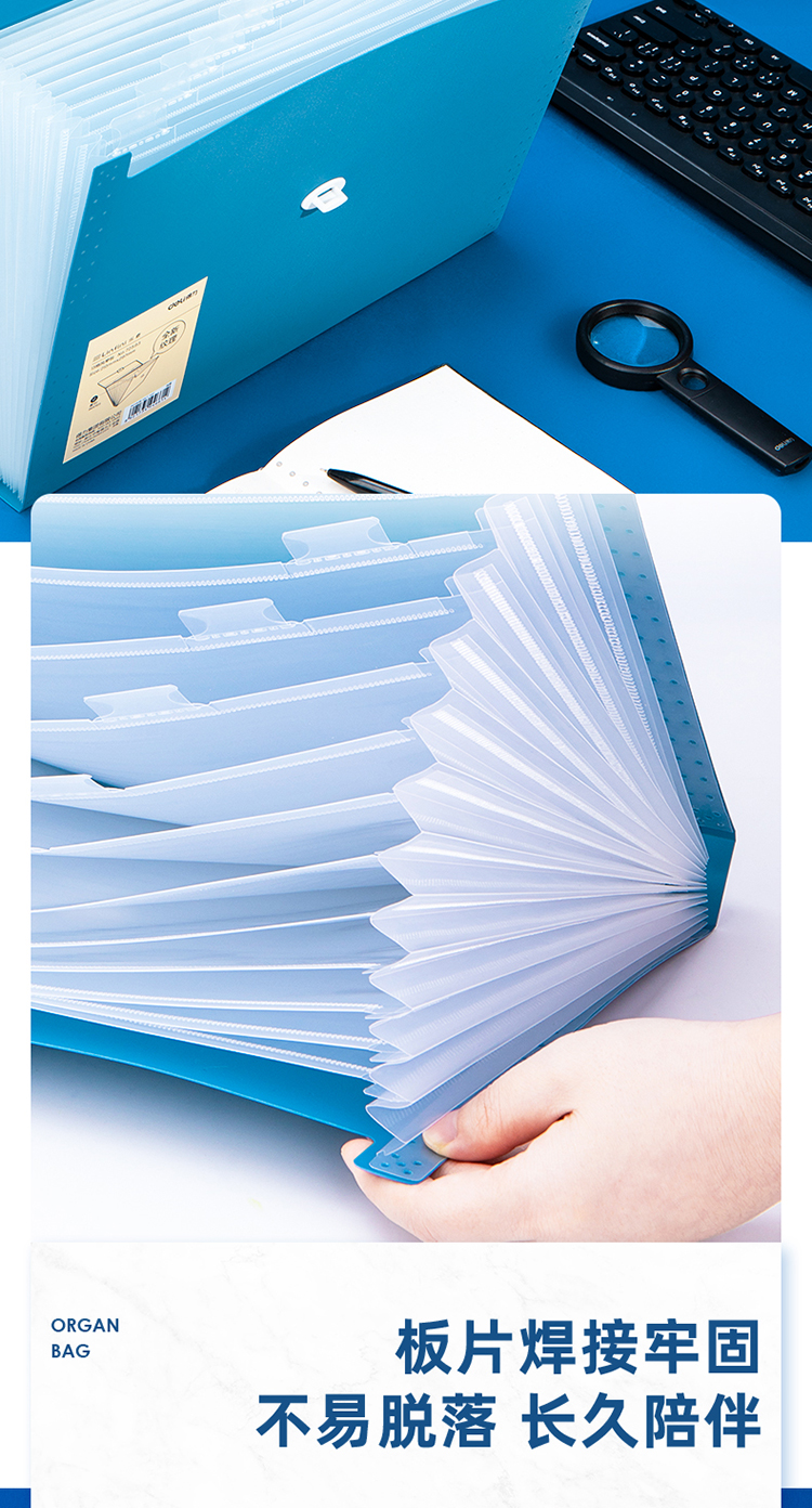 得力(deli)13格A4手提風(fēng)琴包多層文件夾 樂素系列學(xué)生試卷收納袋資料冊(cè)補(bǔ)習(xí)包 淺藍(lán)72593
