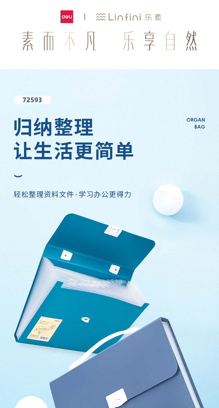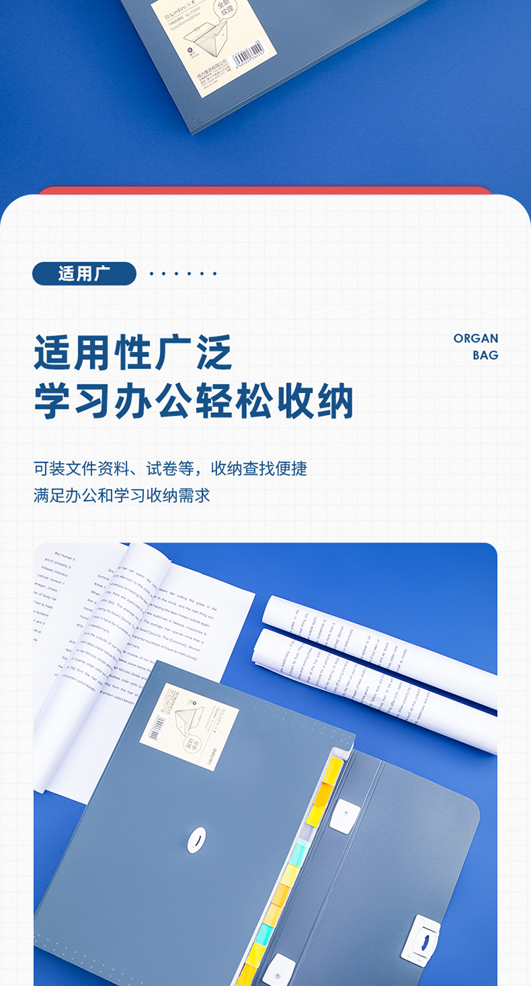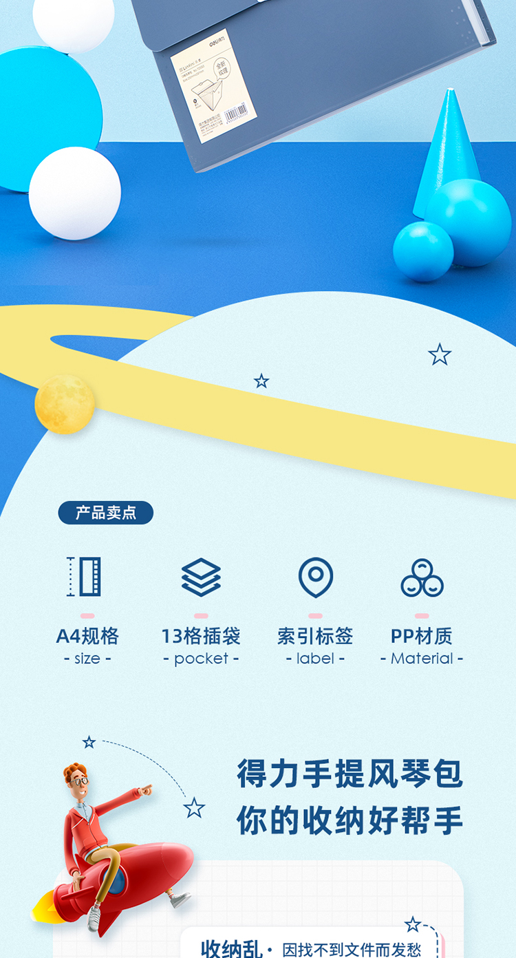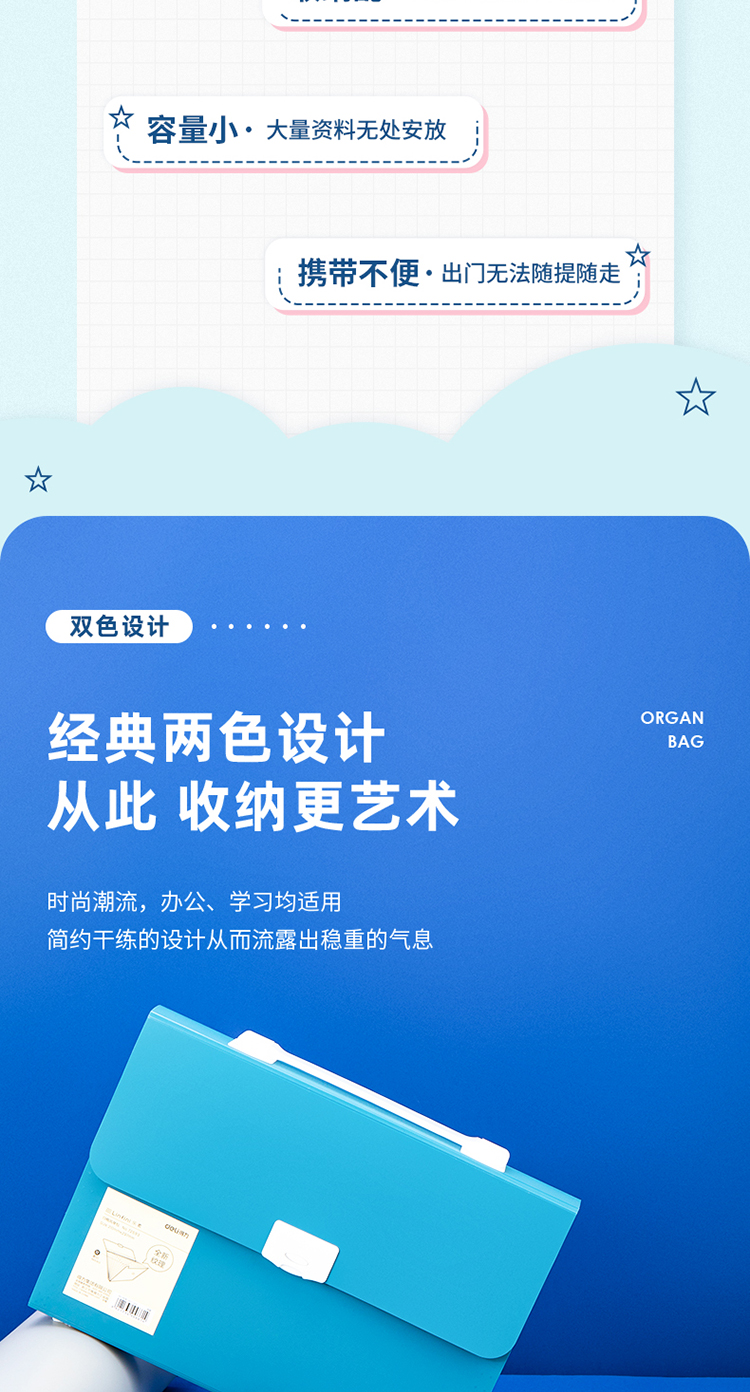 得力(deli)13格A4手提風(fēng)琴包多層文件夾 樂素系列學(xué)生試卷收納袋資料冊(cè)補(bǔ)習(xí)包 淺藍(lán)72593