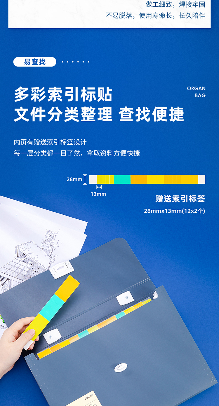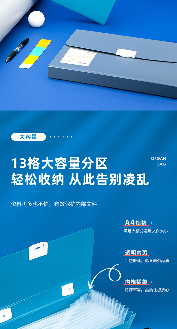 得力(deli)13格A4立式大容量風(fēng)琴包 多層可伸縮文件框資料冊(cè)收納夾 票據(jù)資料收納冊(cè) 63951