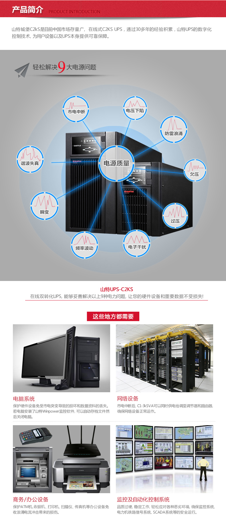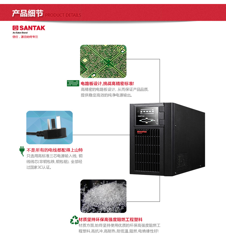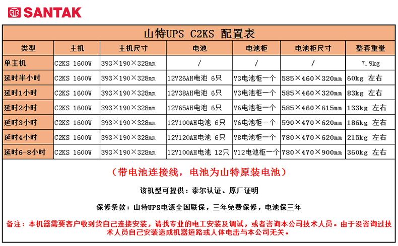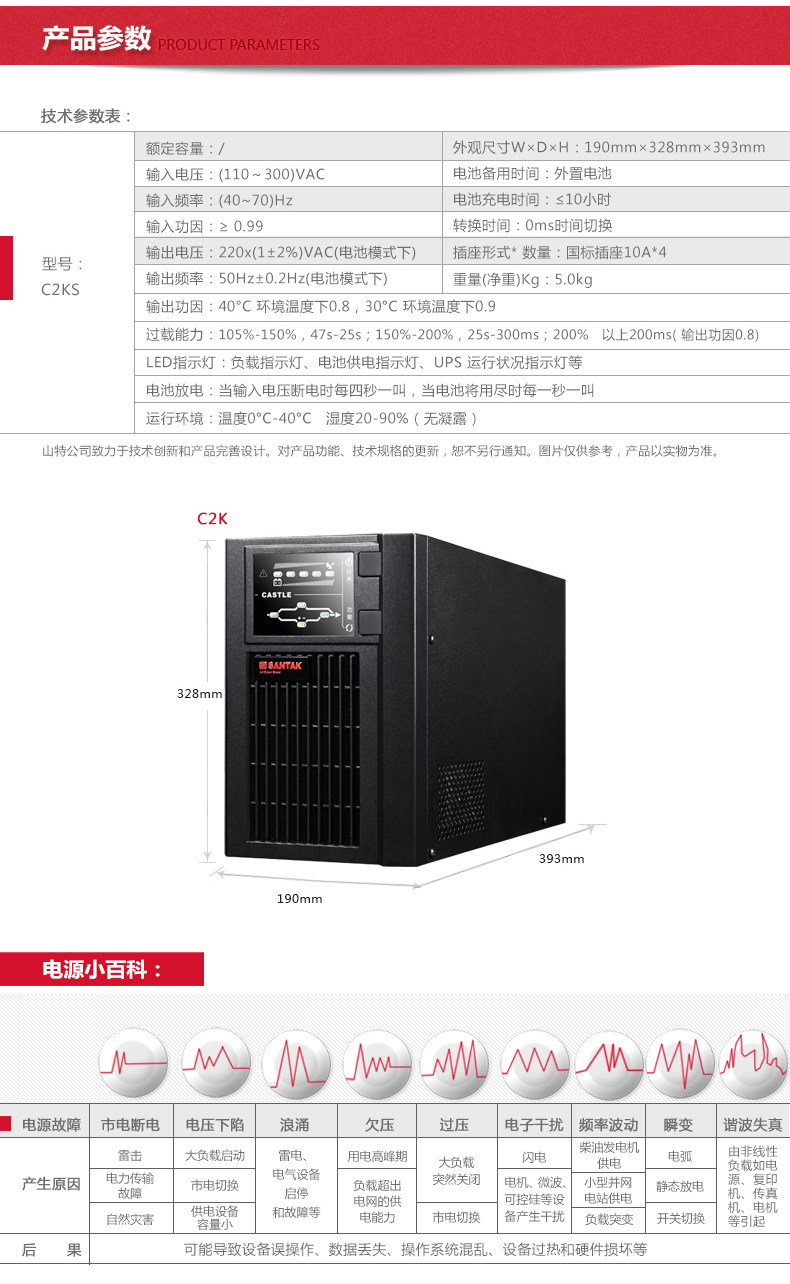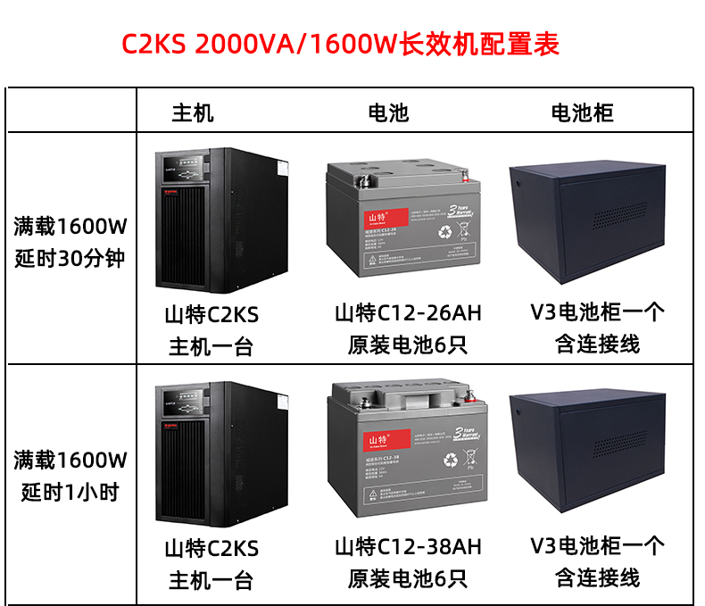 山特(SANTAK)C2KS 2000VA/1600W在線式UPS不間斷電源外接電池長效機(jī) 滿載1600W供電6-8小時