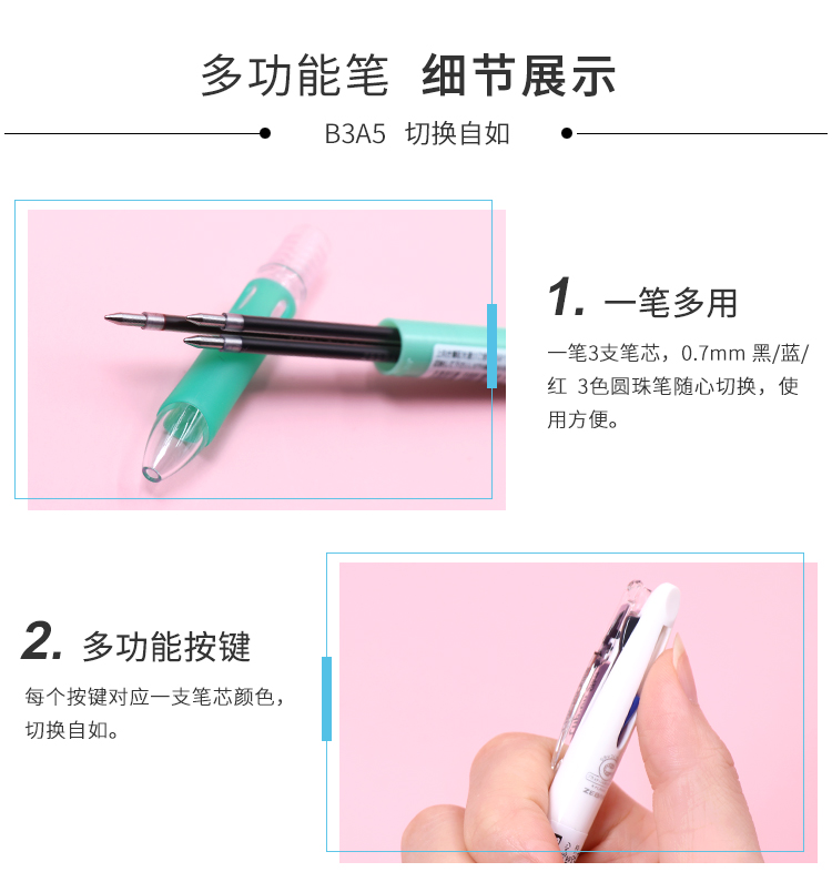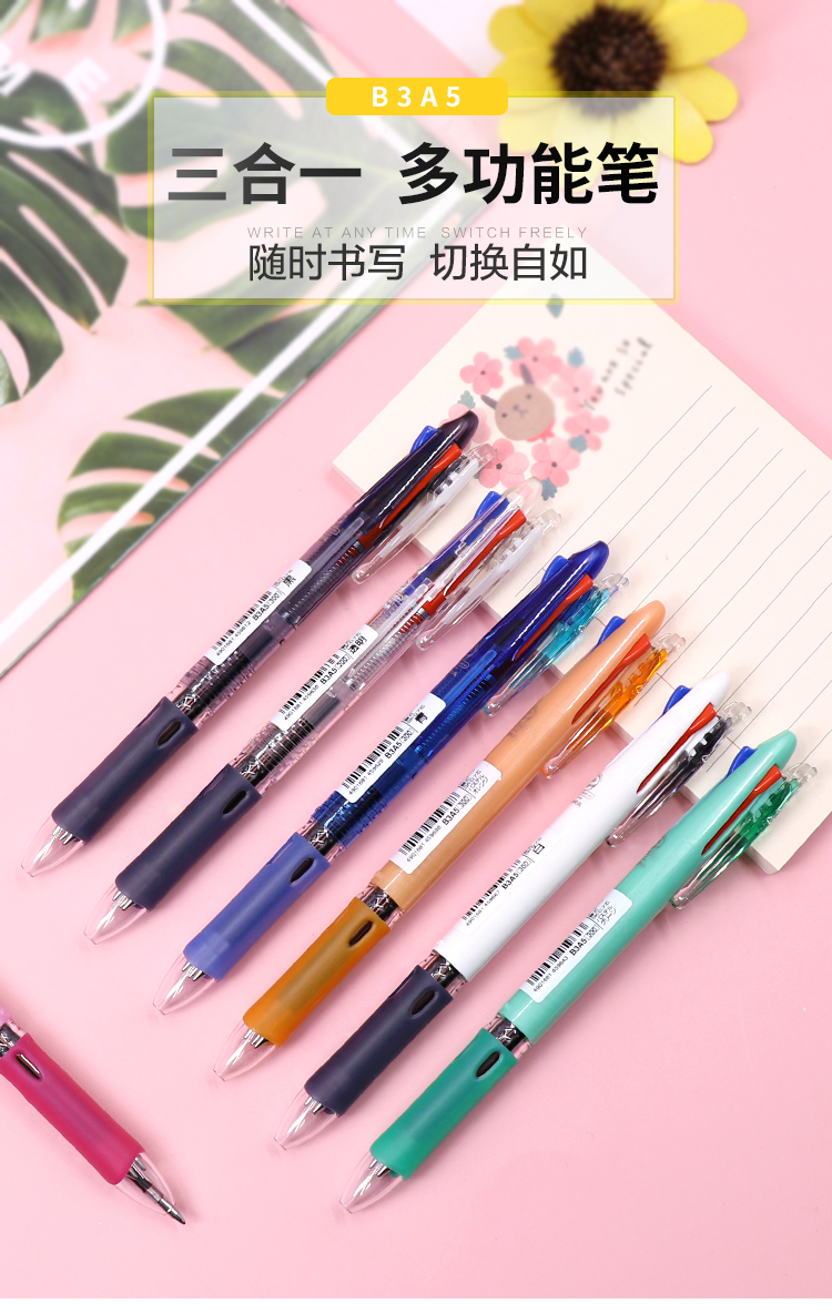 斑馬牌 (ZEBRA)三色圓珠筆 0.7mm子彈頭按壓多功能原子筆B3A5