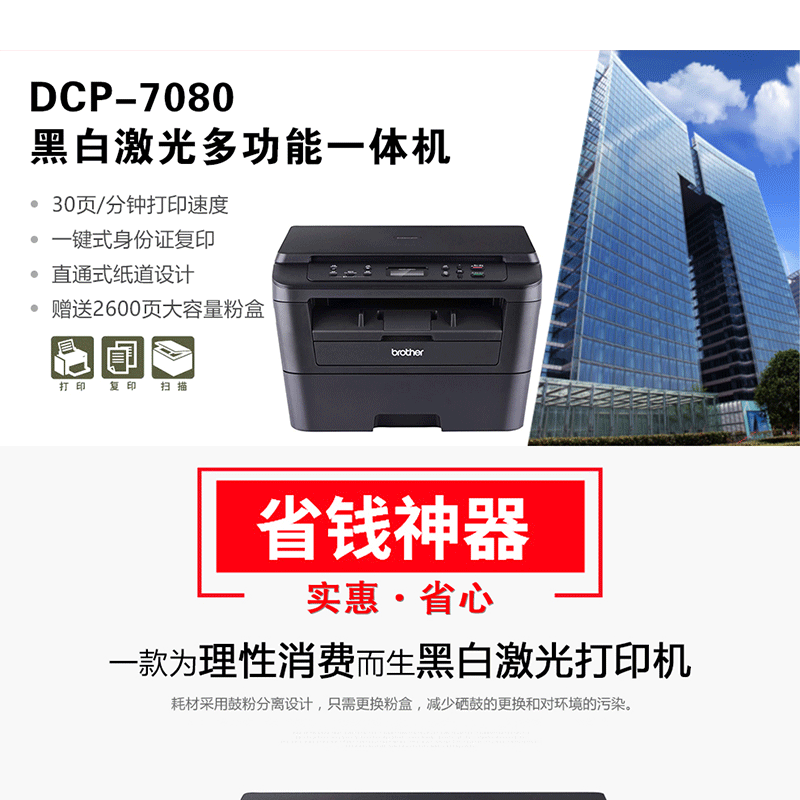 兄弟(brother) DCP-7080 黑白激光多功能一體機(jī)(打印、復(fù)印、掃描)