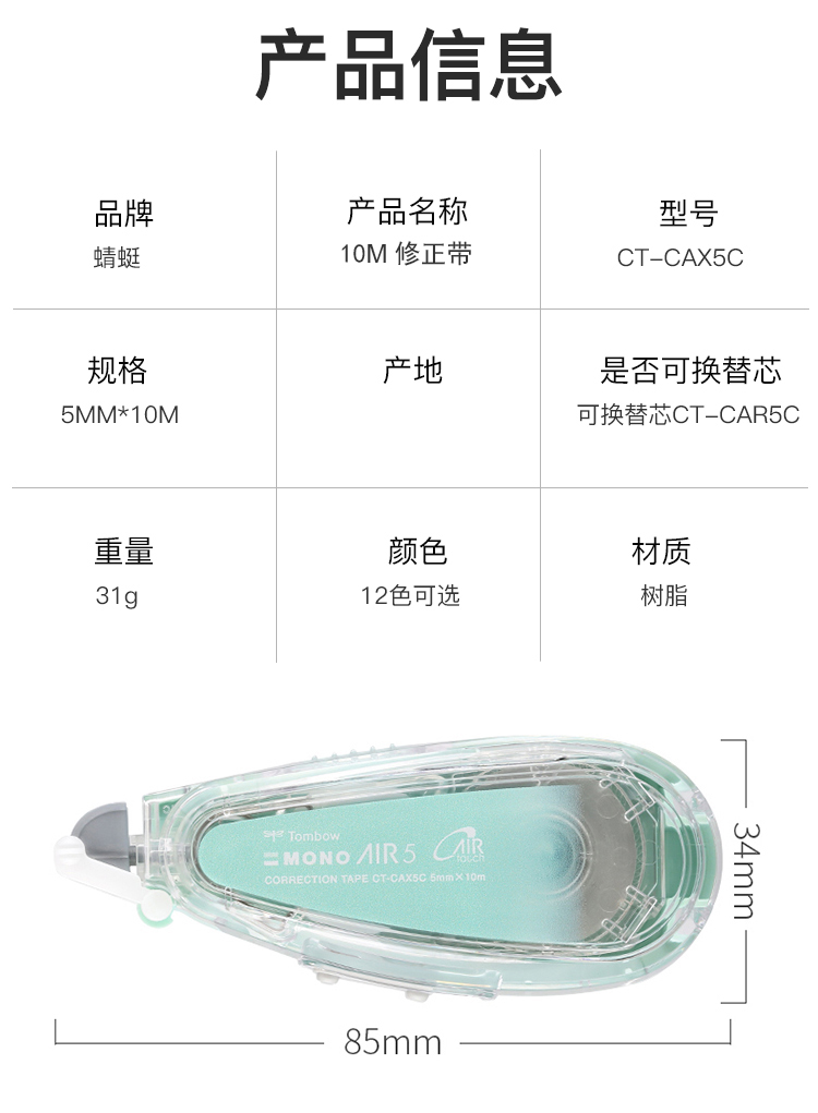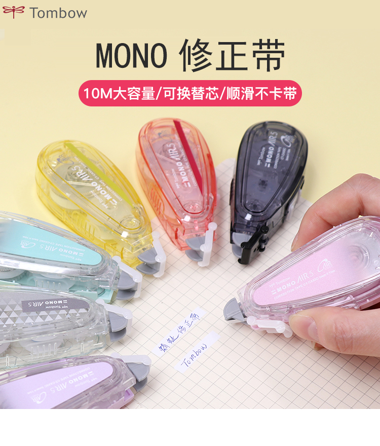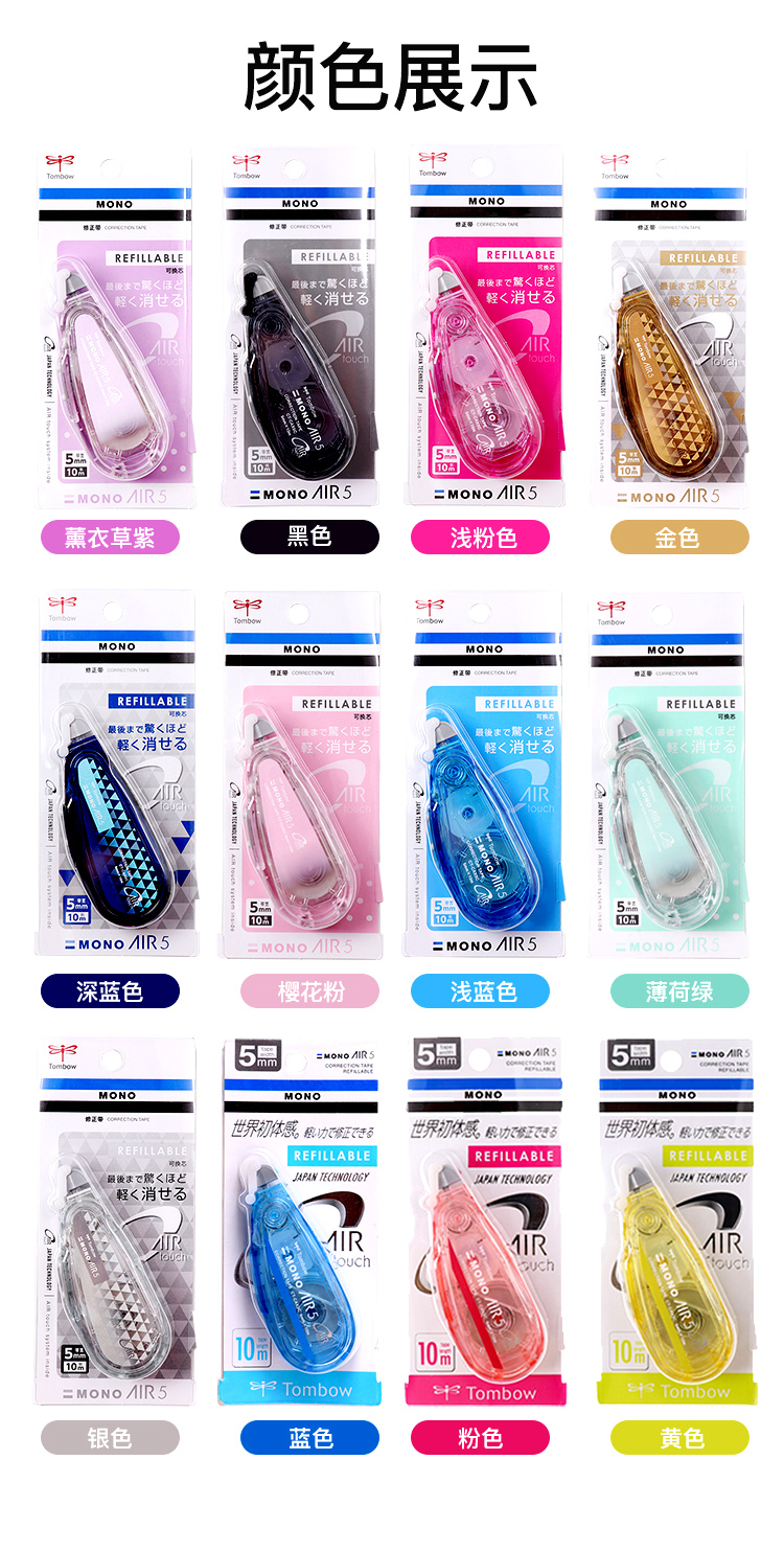 TOMBOW蜻蜓修正帶多彩涂改帶替芯可換長10M 黑色本體九個裝CT-CAX5C