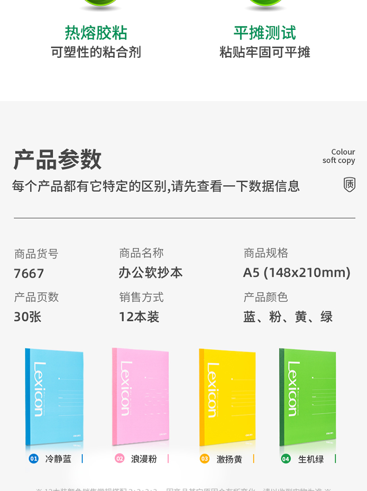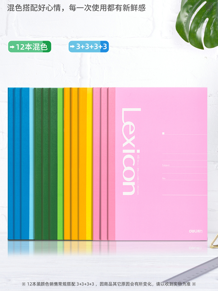 得力(deli)A5/30張無線膠裝軟抄本記事本7667(12本裝)