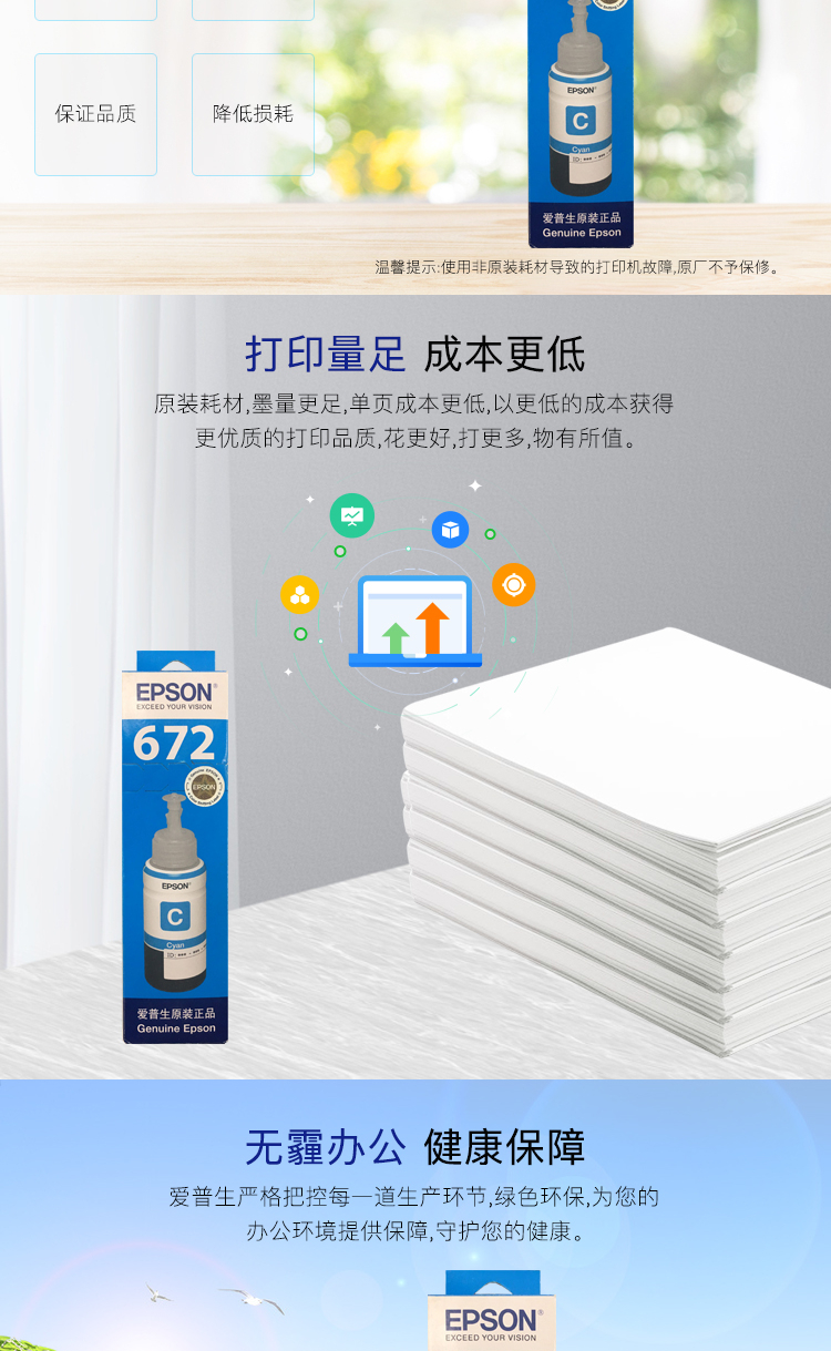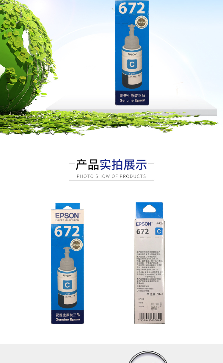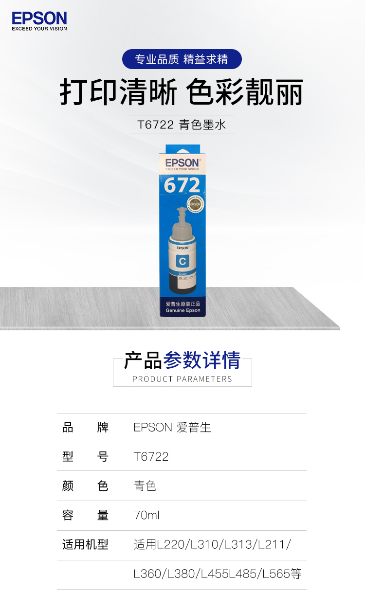 愛普生(EPSON)T6722 墨倉打印機墨水 70ML 青色