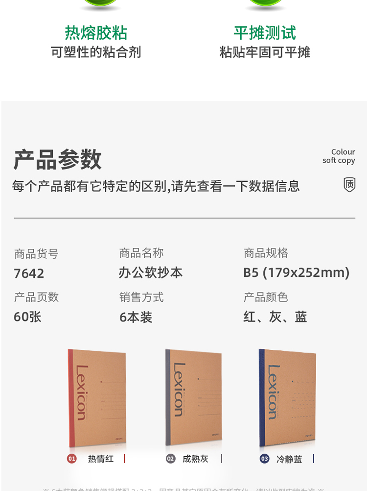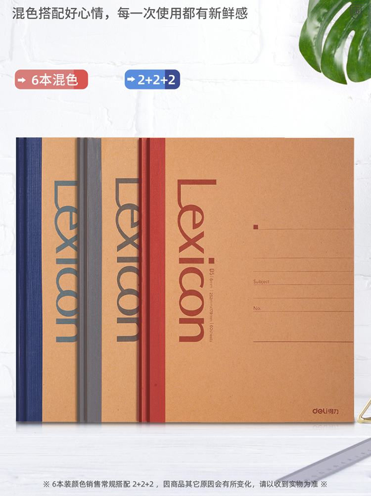 得力(deli)B5/60張牛皮紙無線膠裝軟抄本記事本7642(12本裝)