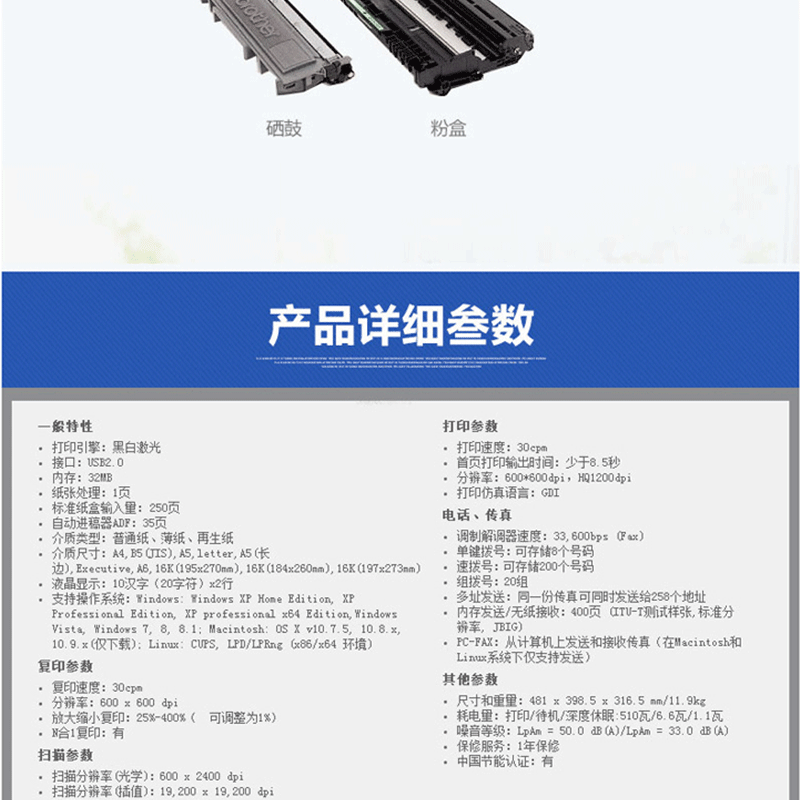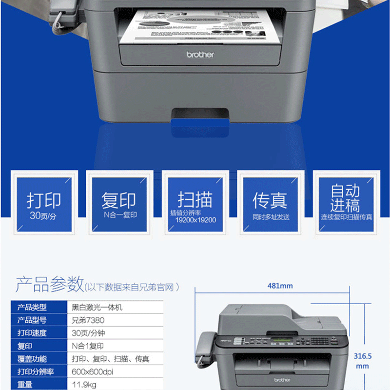 兄弟(brother) MFC-7480D 黑白激光多功能一體機(jī)(打印、復(fù)印、掃描、傳真)