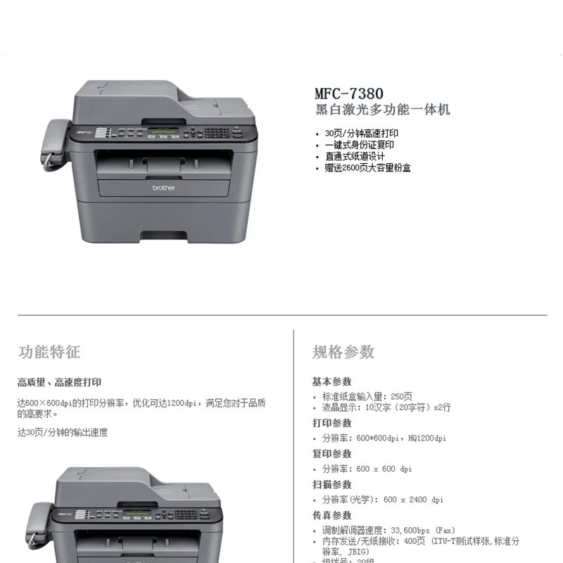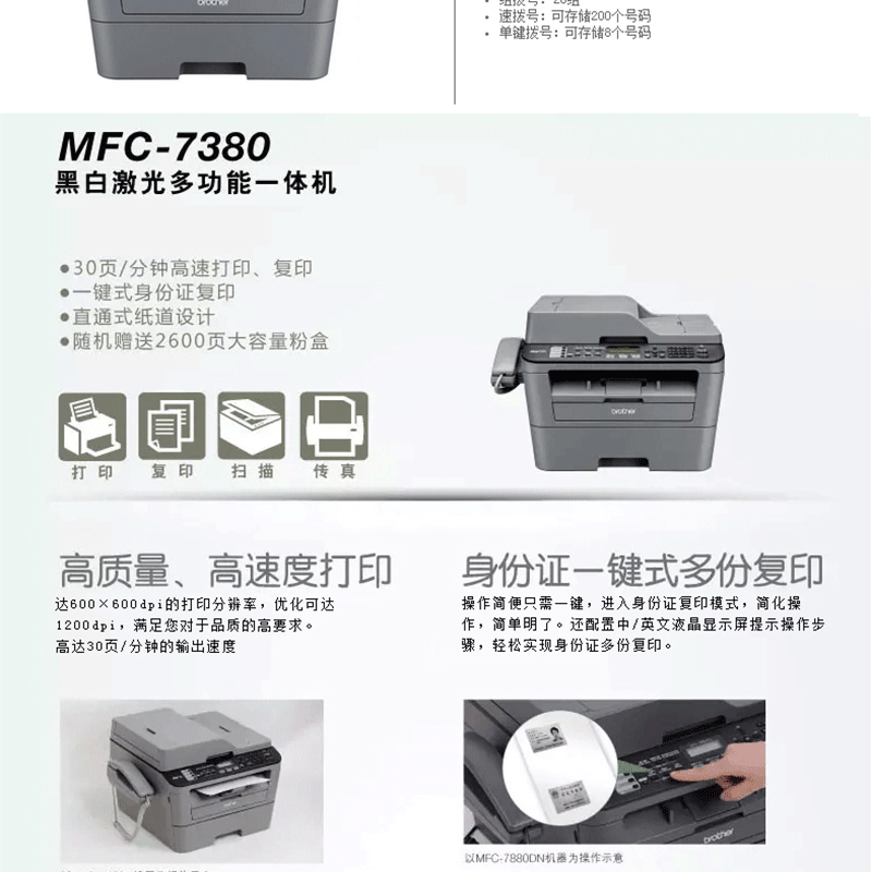 兄弟(brother) MFC-7380 黑白激光多功能一體機(打印、復(fù)印、掃描、傳真)