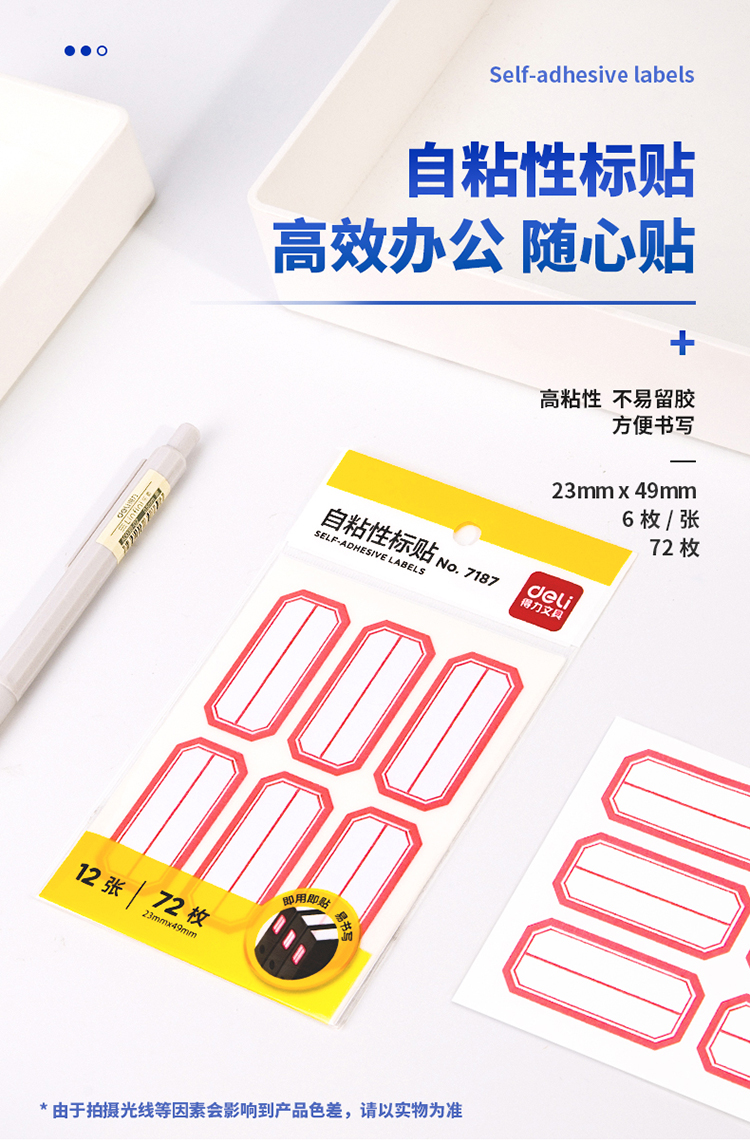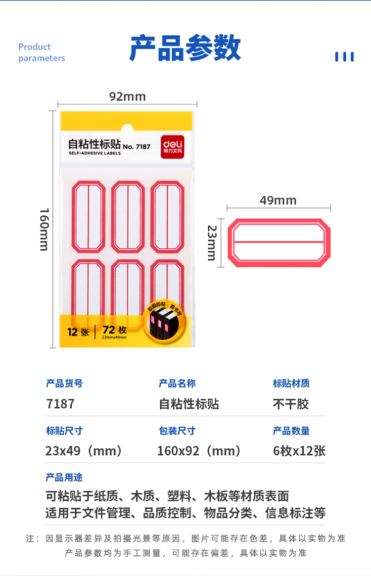 得力(deli) 粘性標(biāo)簽標(biāo)貼 7187每張6枚 共12張23*49mm