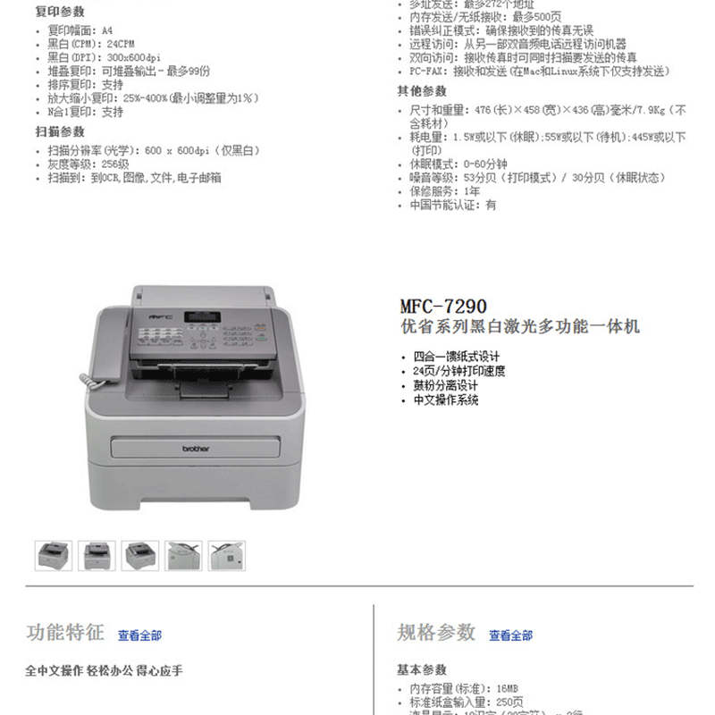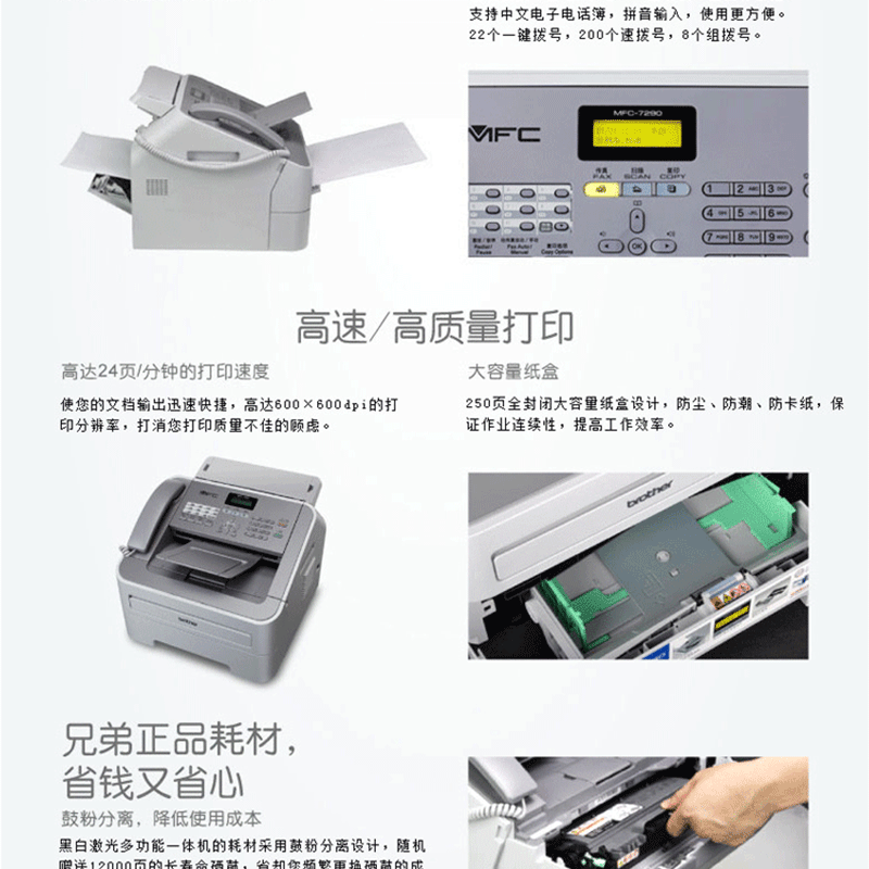 兄弟(brother) MFC-7290 饋紙式黑白激光多功能一體機(jī)(打印 復(fù)印 掃描 傳真)