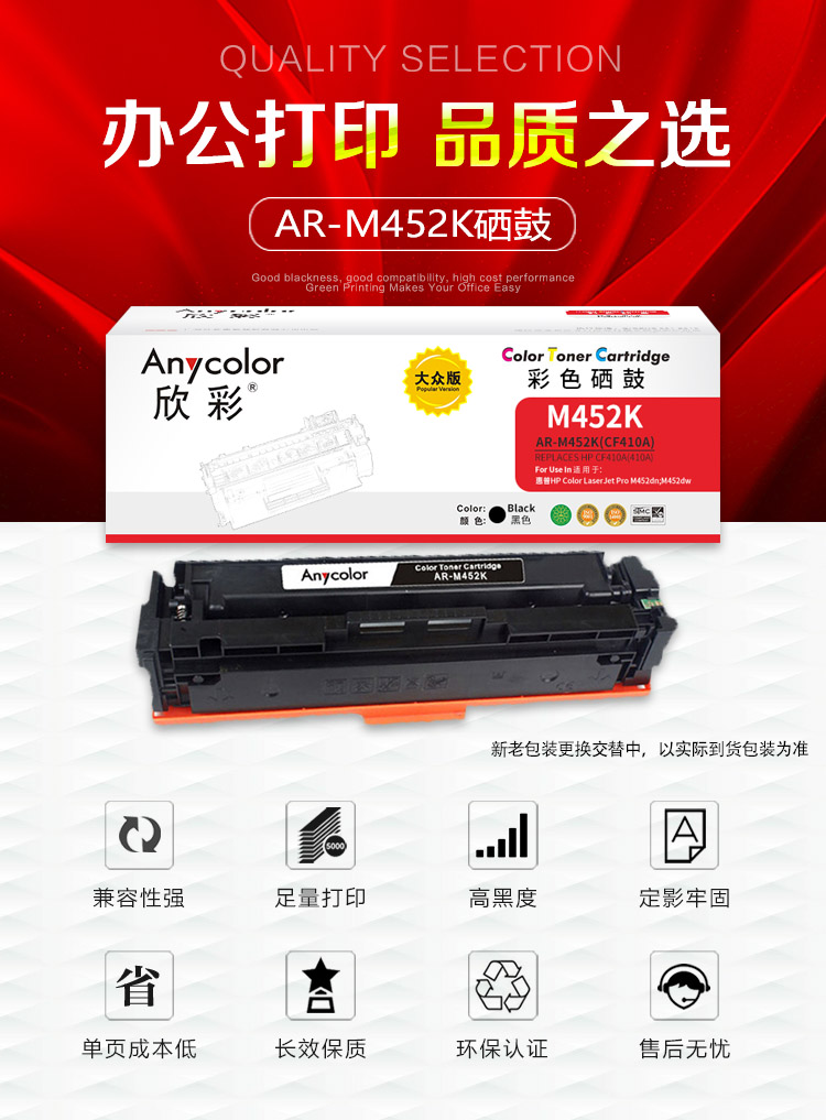欣彩 CF410A 410A硒鼓 大眾版 AR-M452K黑色