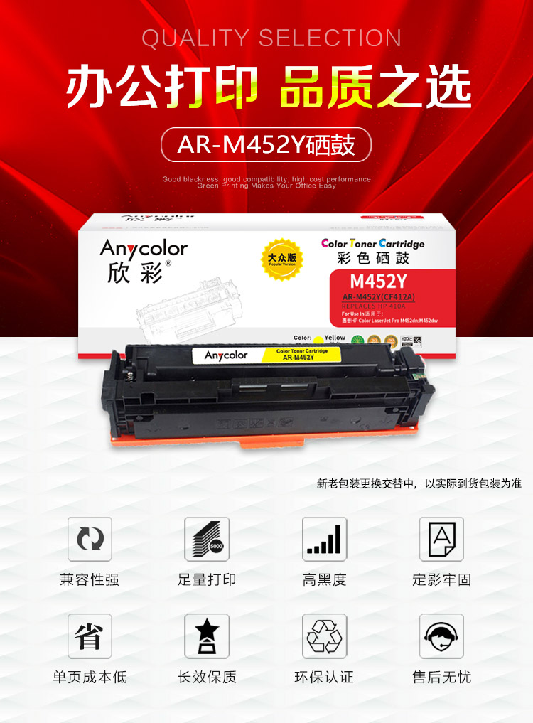 欣彩 CF412A 410A硒鼓 大眾版 AR-M452Y黃色