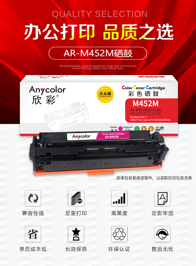 欣彩 CF413A 410A硒鼓 大眾版 AR-M452M紅色