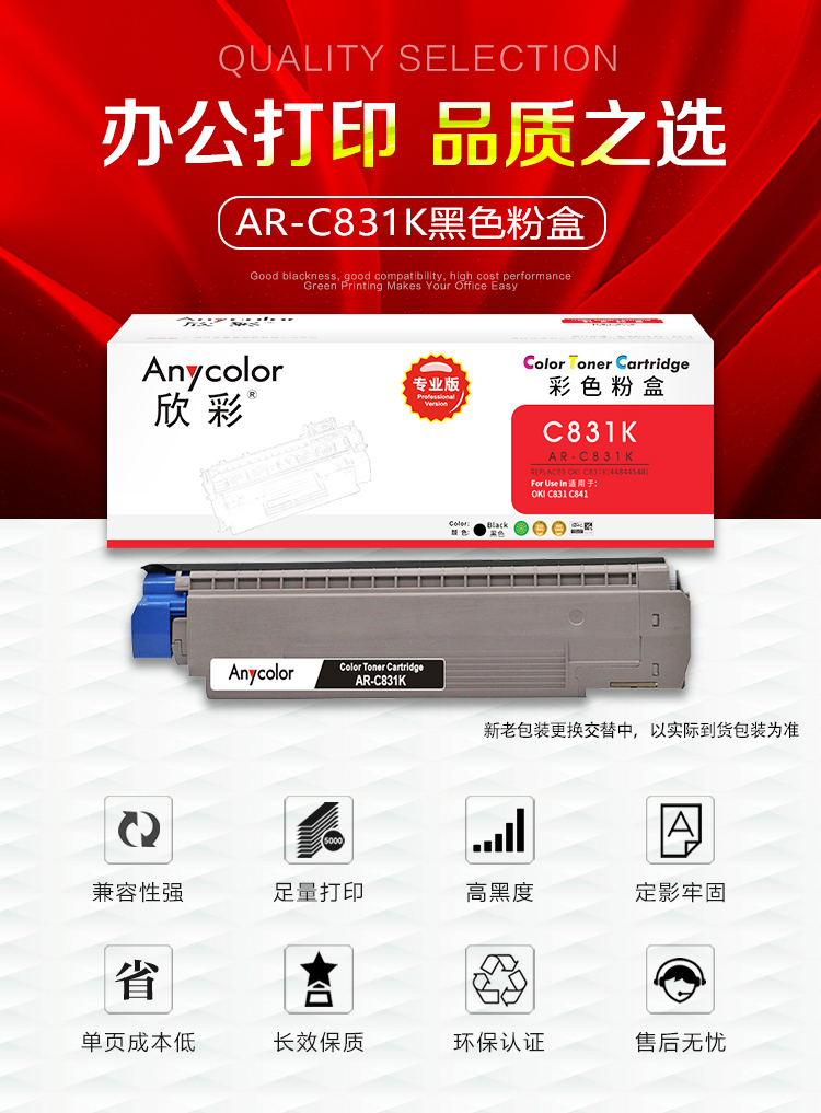 欣彩 OKI C833粉盒 AR-C833M紅色