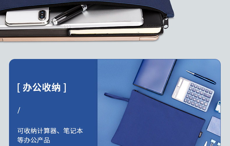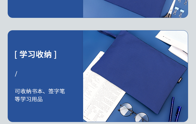 得力(deli)A4拉鏈袋厚文件袋布質(zhì)帆布收納袋 藍色63466