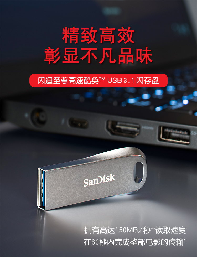 閃迪(SanDisk)512GB USB3.1 U盤 CZ74酷奐 銀色 金屬外殼 內(nèi)含安全加密軟件