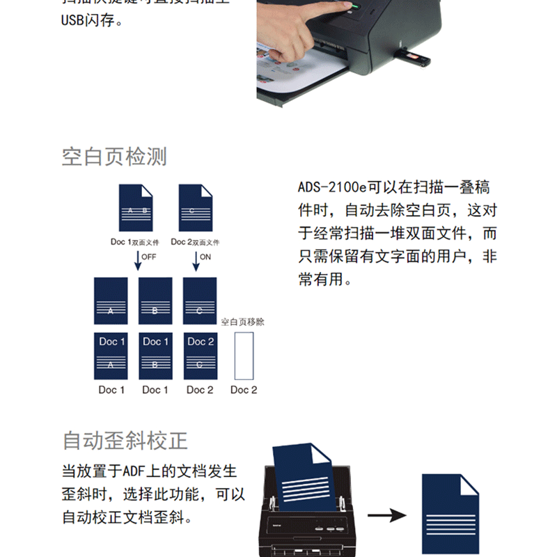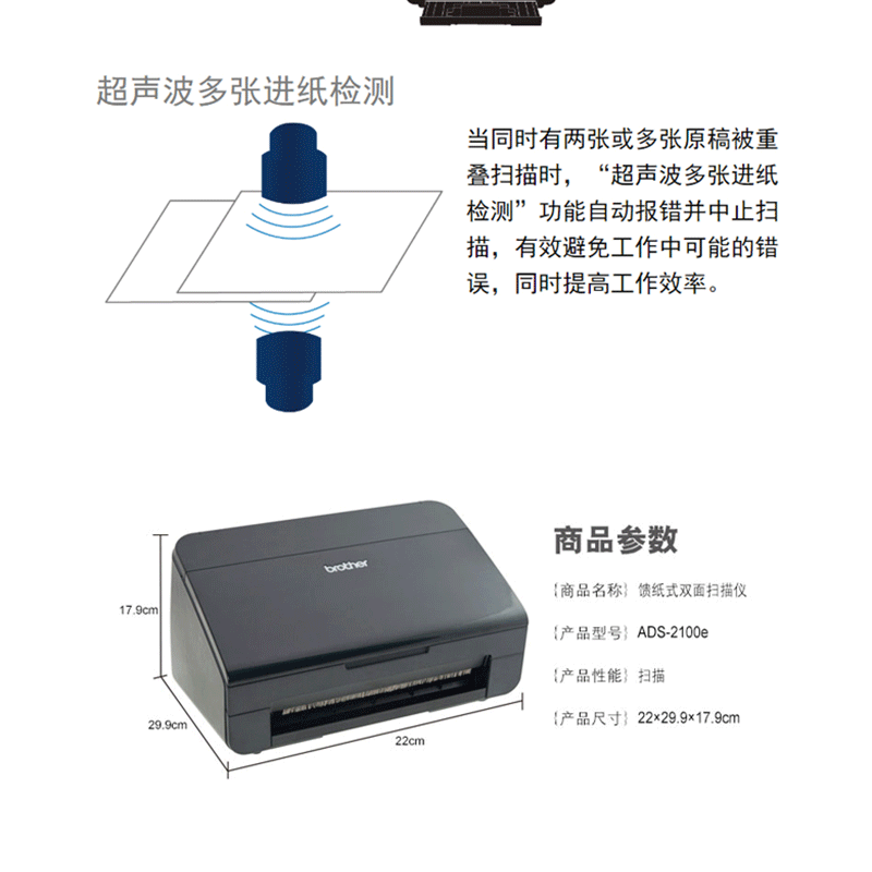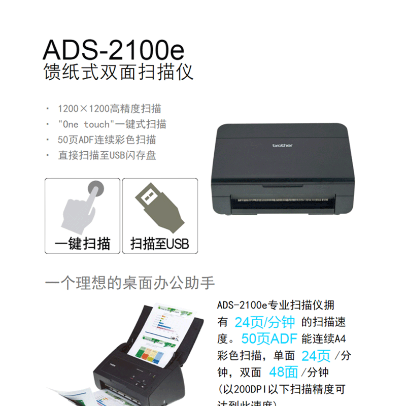 兄弟(brother) ADS-2100e 饋紙式掃描儀 U盤保存 精度雙面掃描